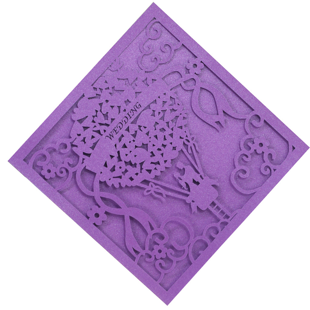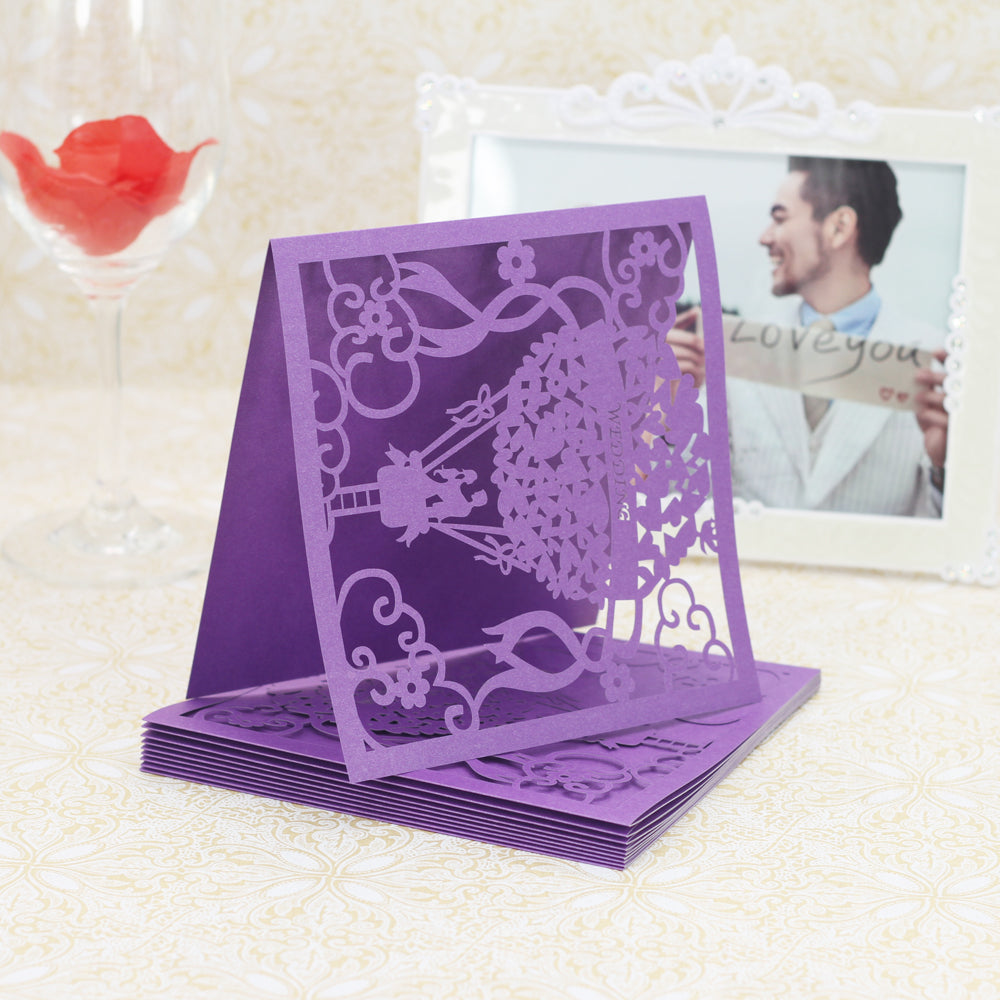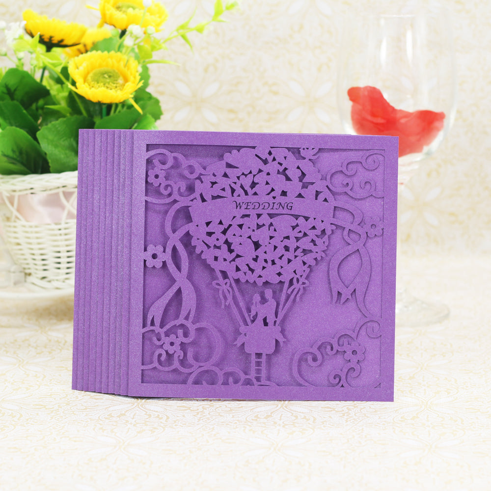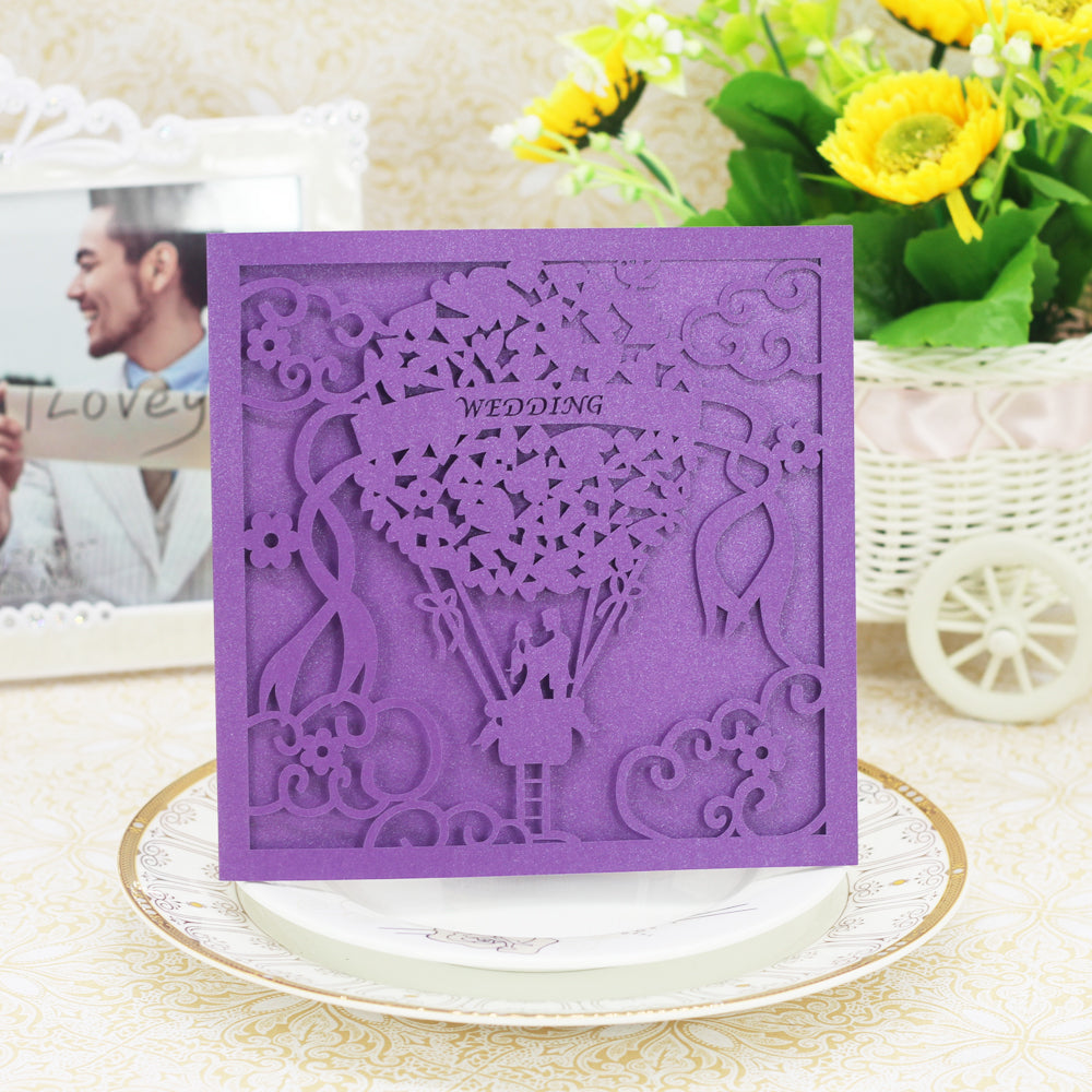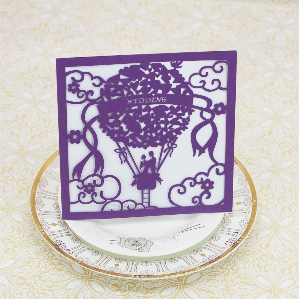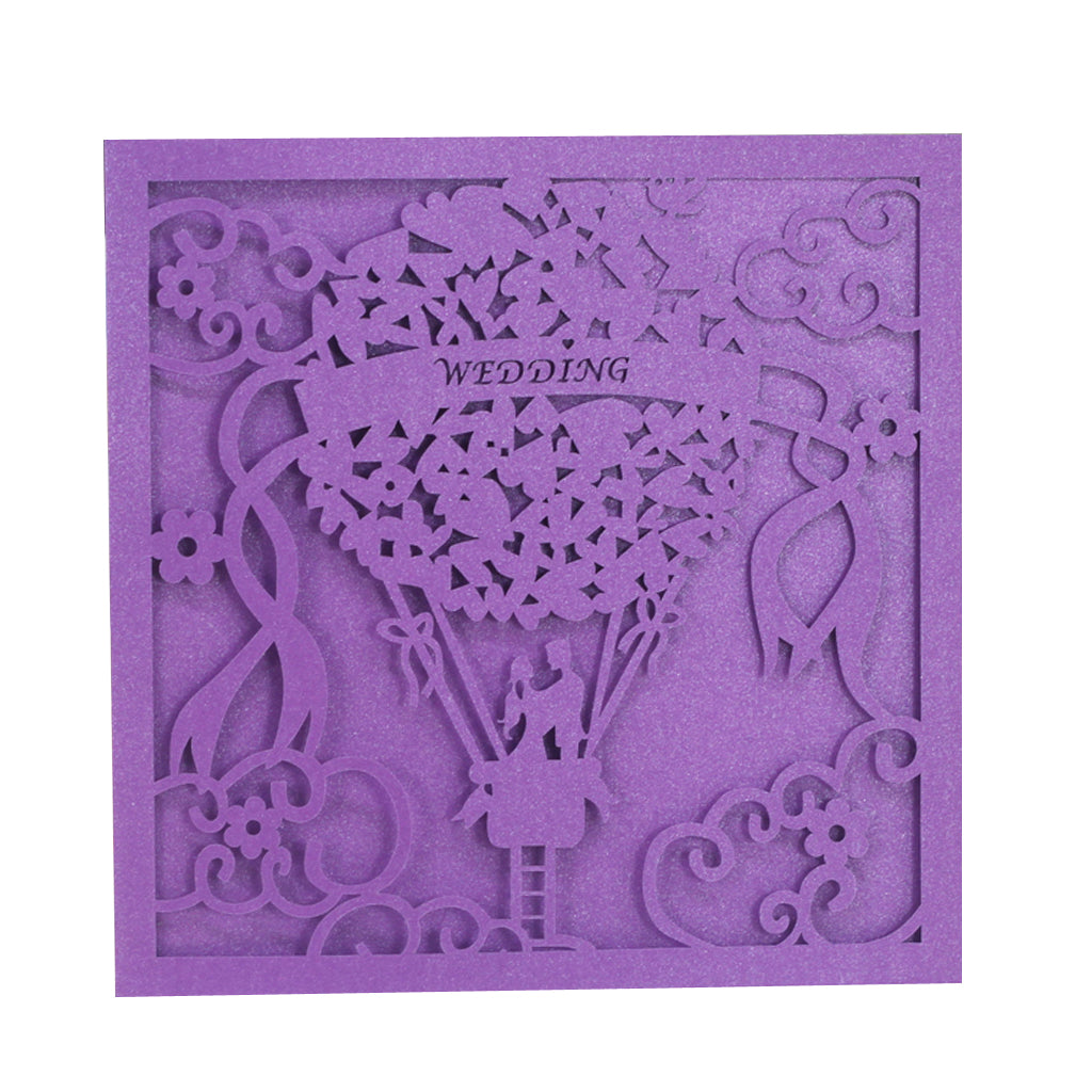 20x Square Elegant Laser Cut Balloon Wedding Party Invitation Cards Purple