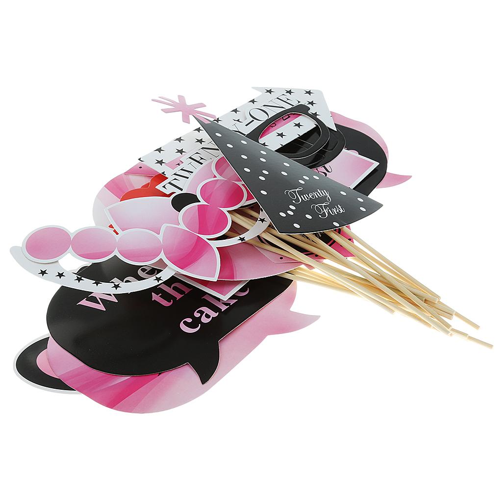 21pcs Stick 21st Birthday Party Glasses Photo Booth Props Lips Crown Tie