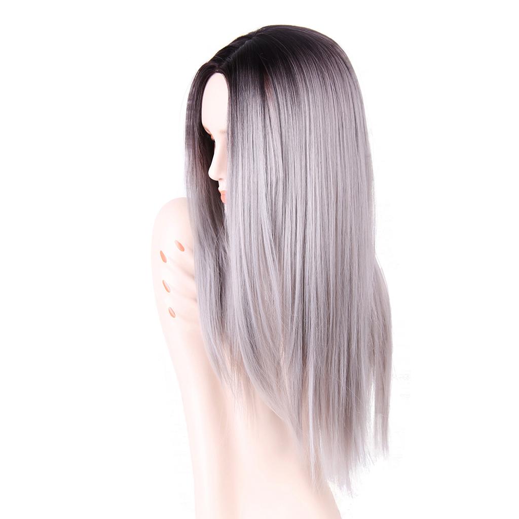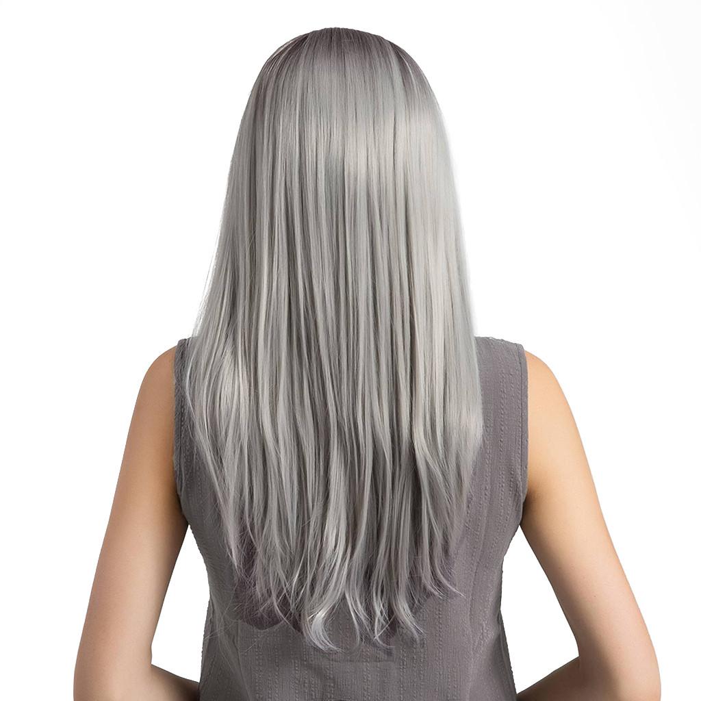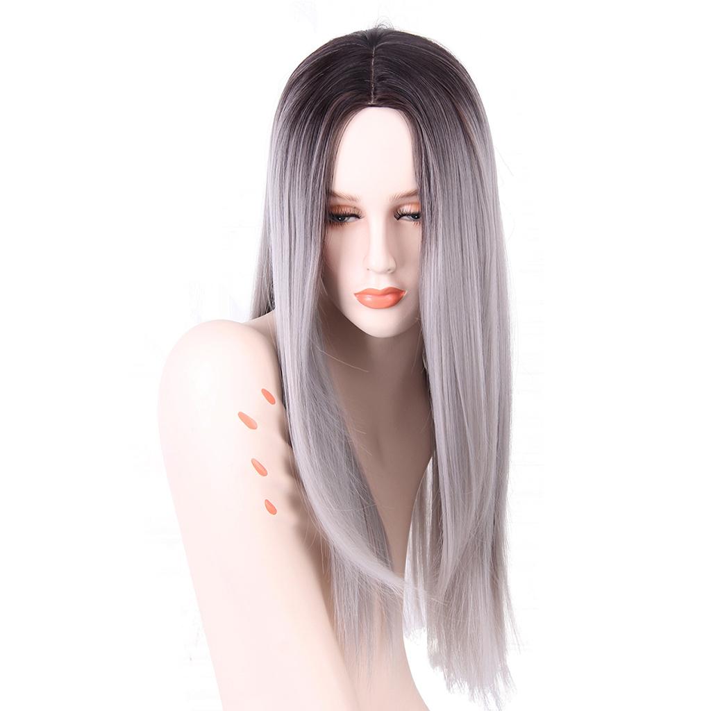 Gradient black grey long Straight wigs, stylish, fashionable and charming.