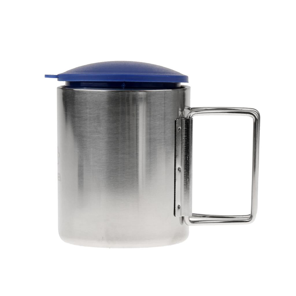 220ml Portable Camping Hiking Stainless Foldable Handle Mug Cup with Cover