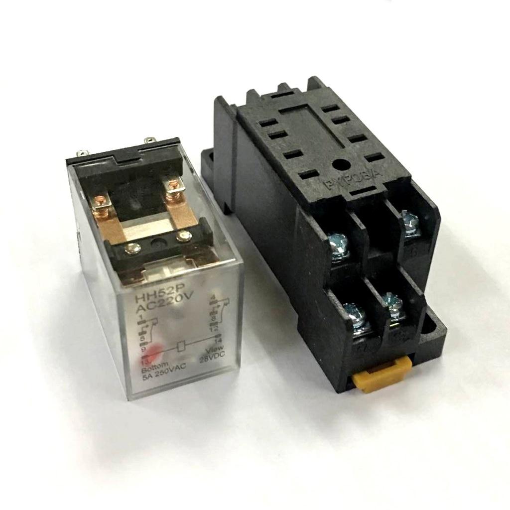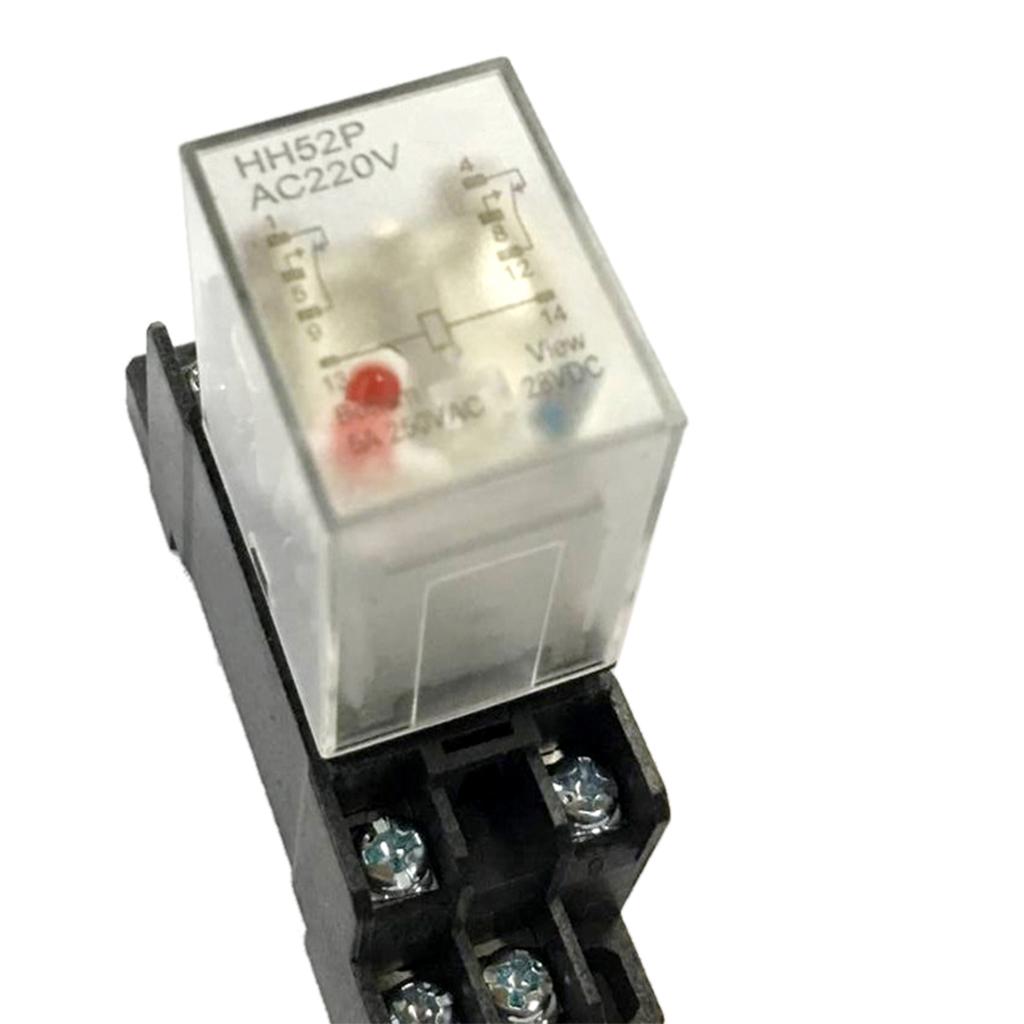 220V AC Coil 5A General Purpose DPDT Micro Mini Power Relay + DIN Rail Base Holder