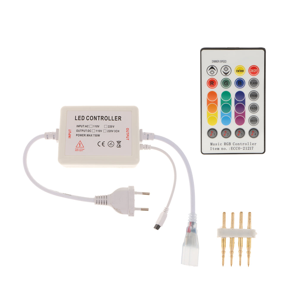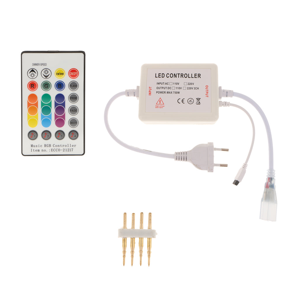 Used to control high voltage LED strip lights, speed and brightness are adjustable.