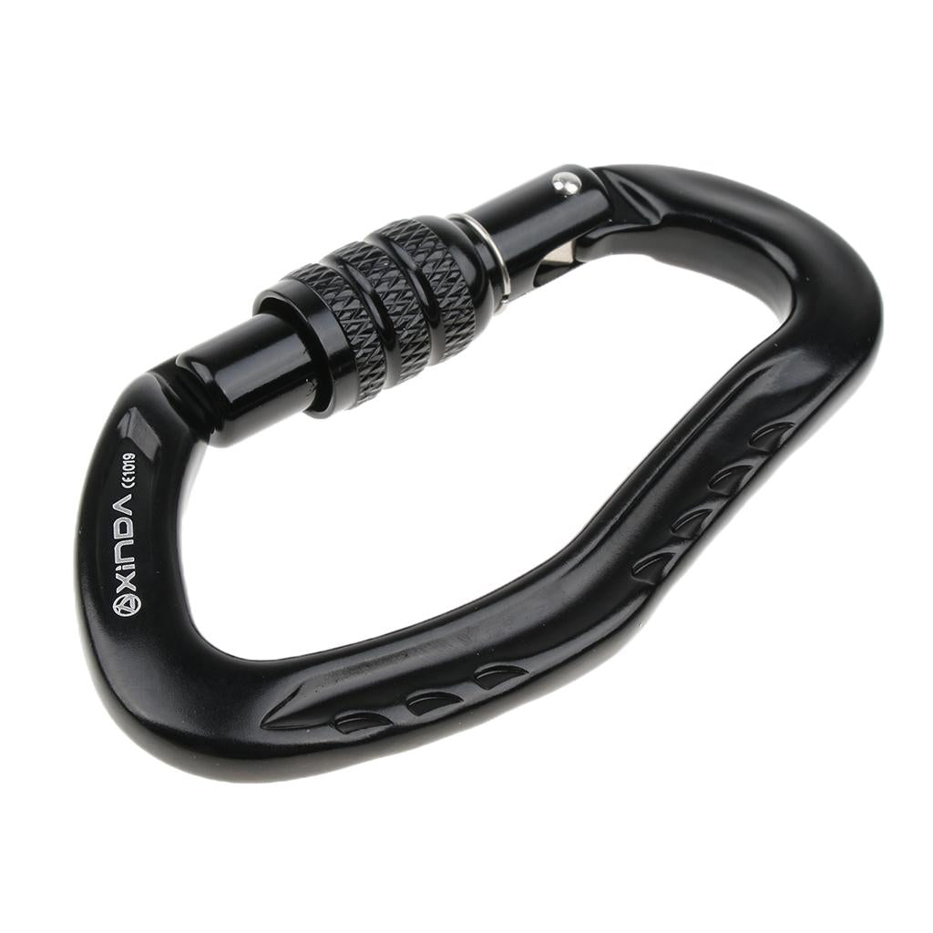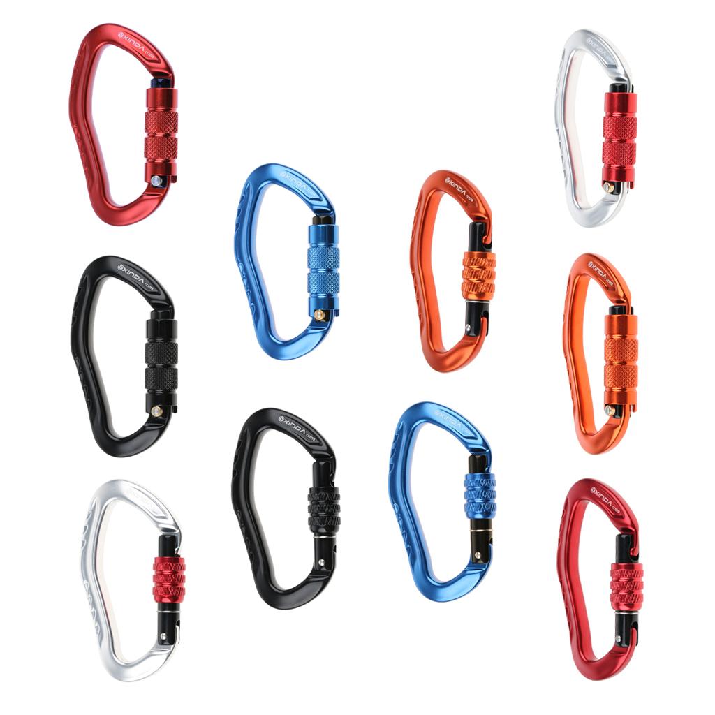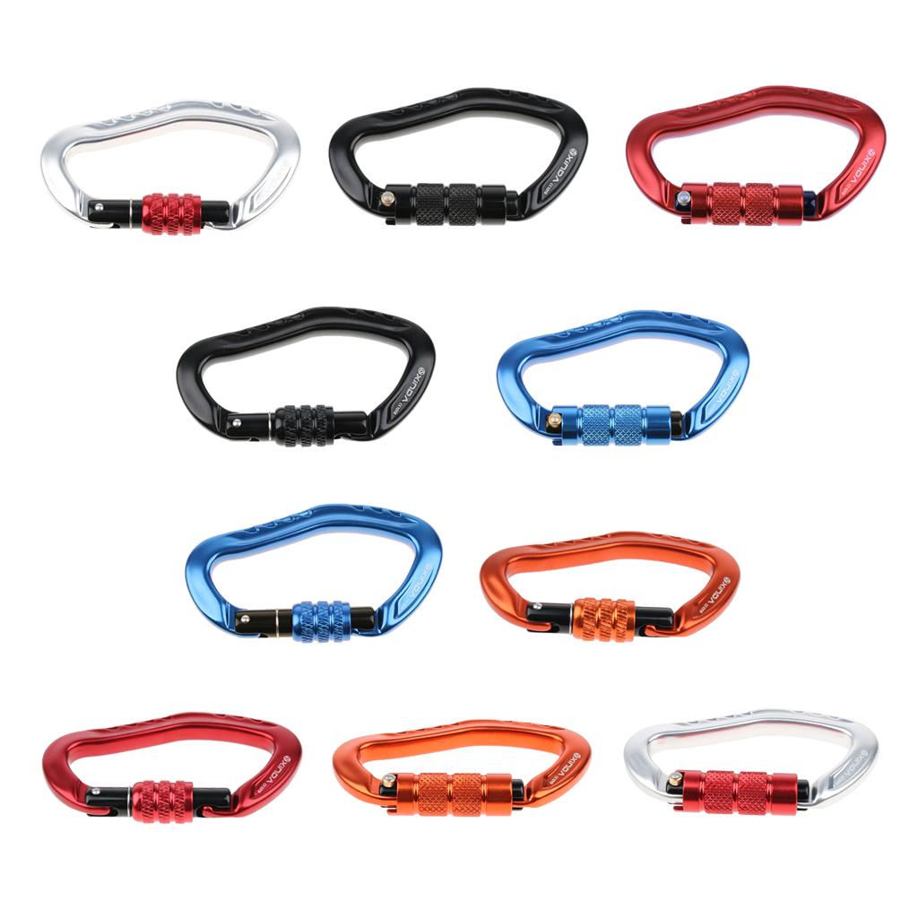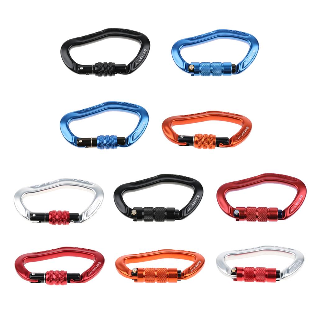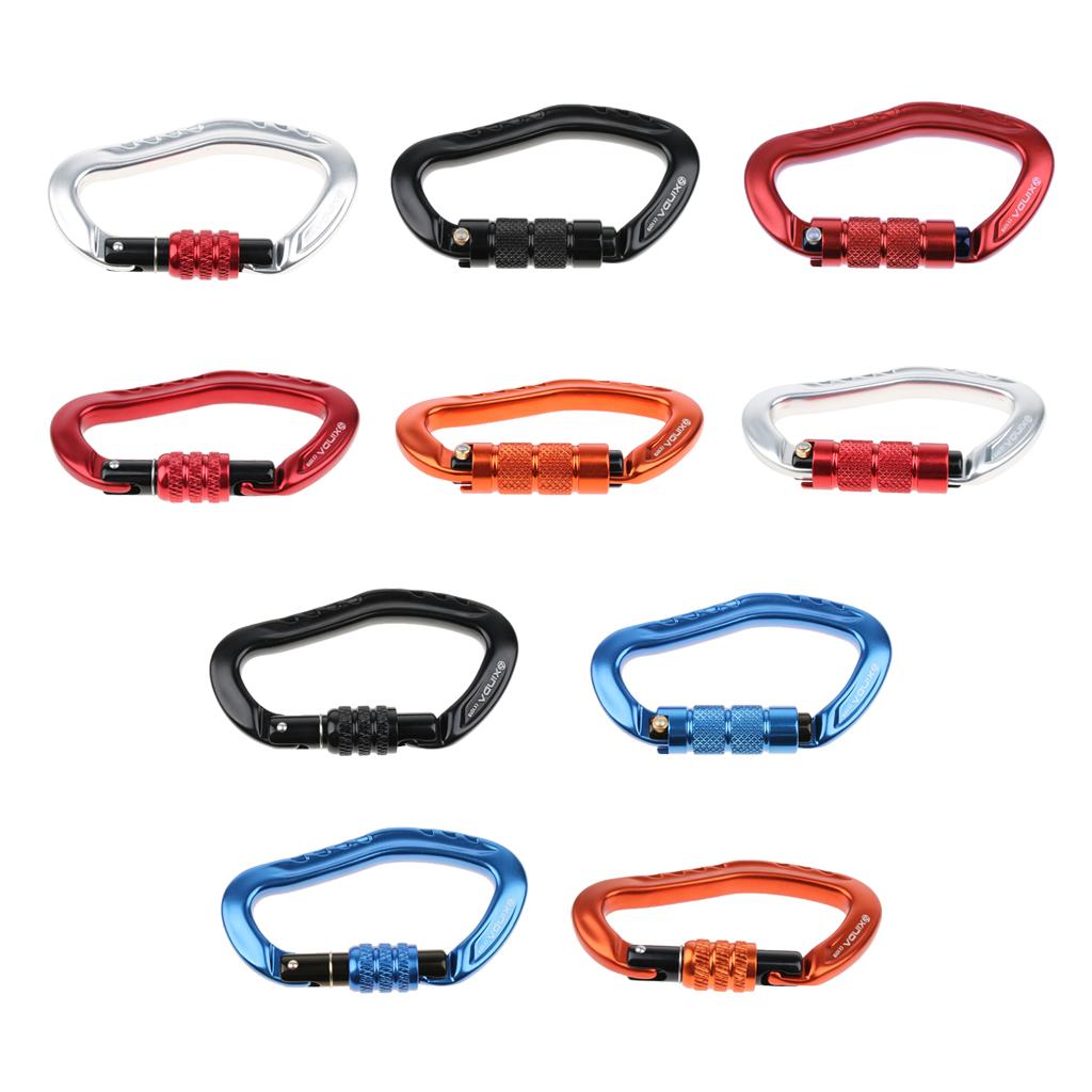 D type design, ear shape, main carabiner for outdoor sports, opening mouth fit for webbing, strap, rope, buckle, etc.