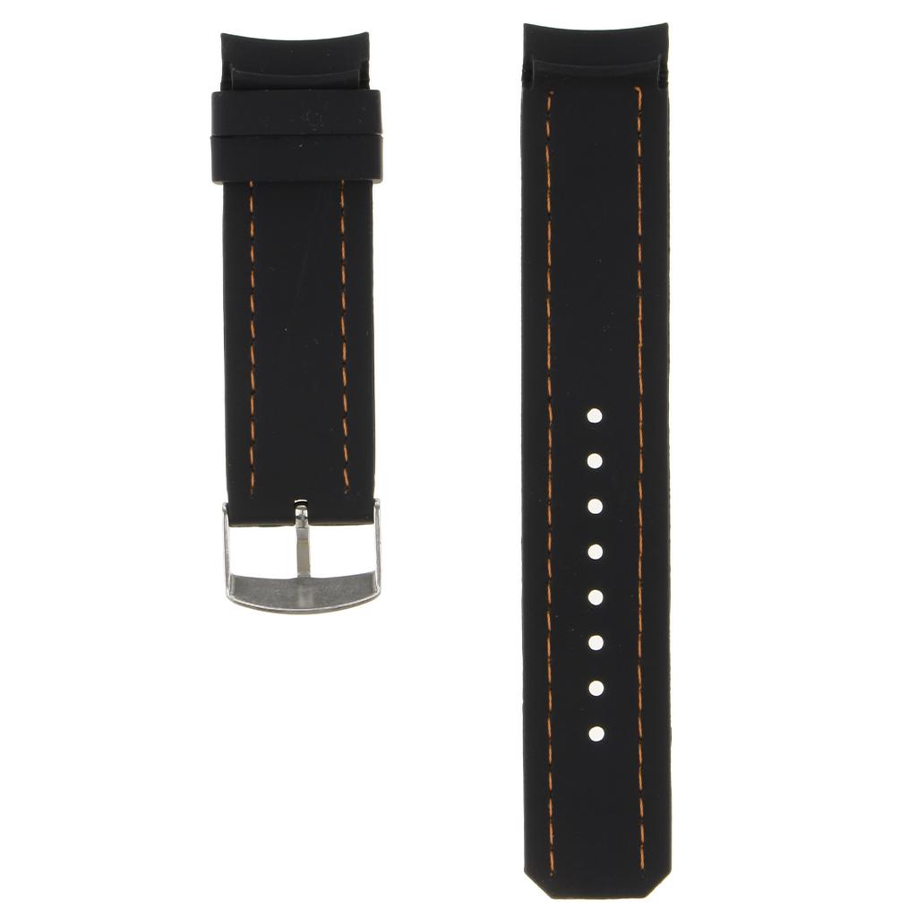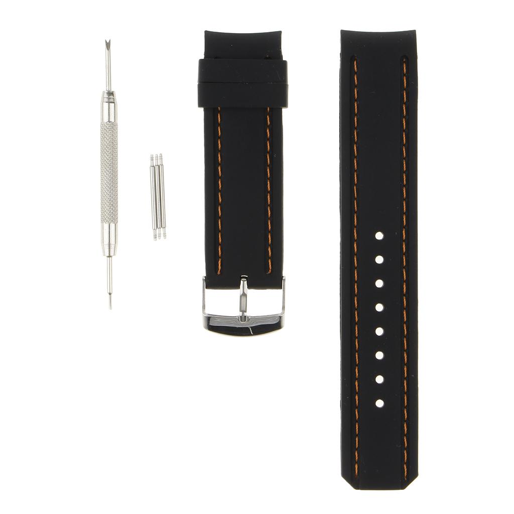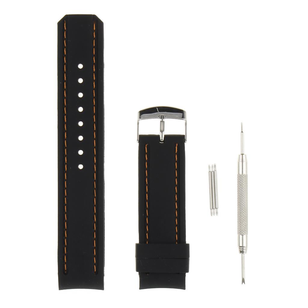 22mm Black Silicone Sport Watchband Strap Stitch Wristband Orange Stitch