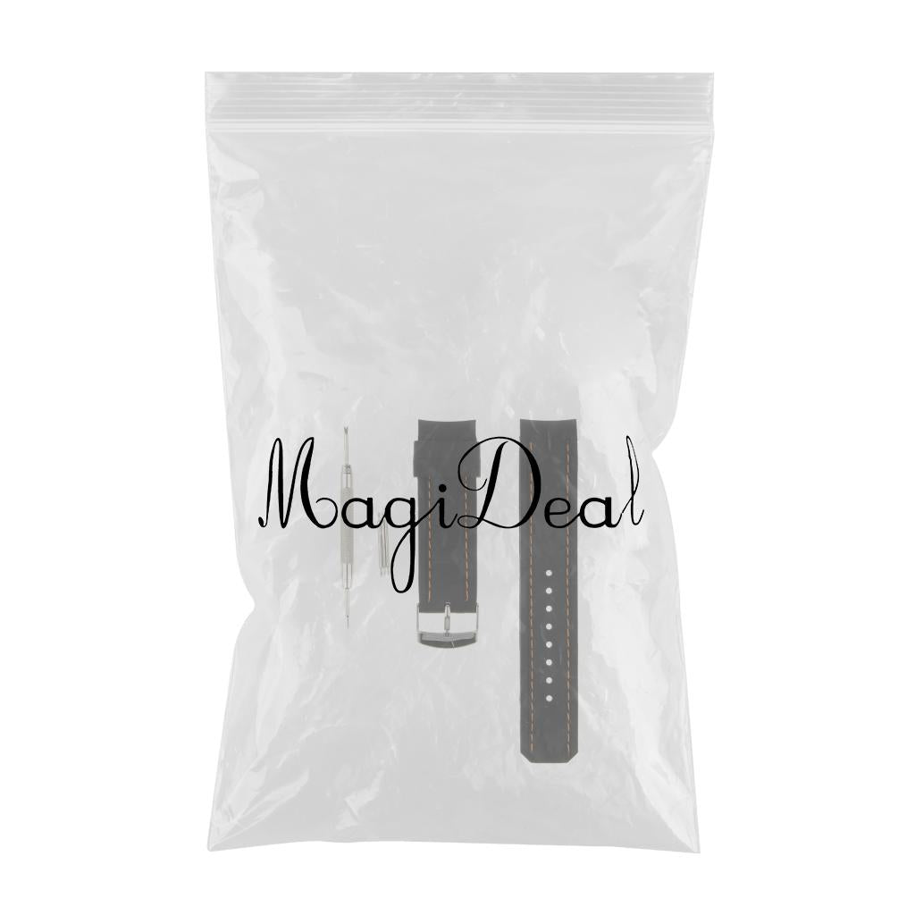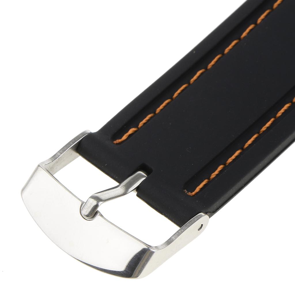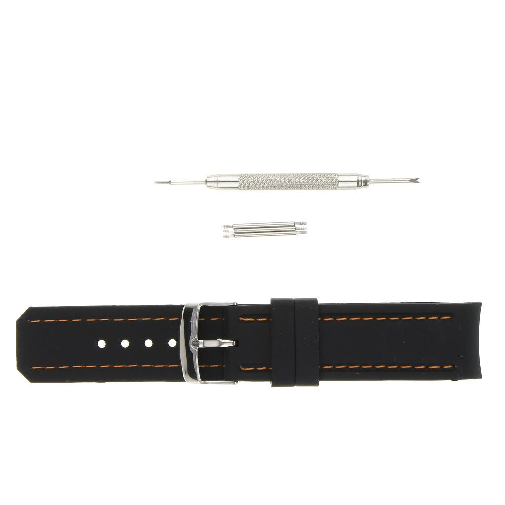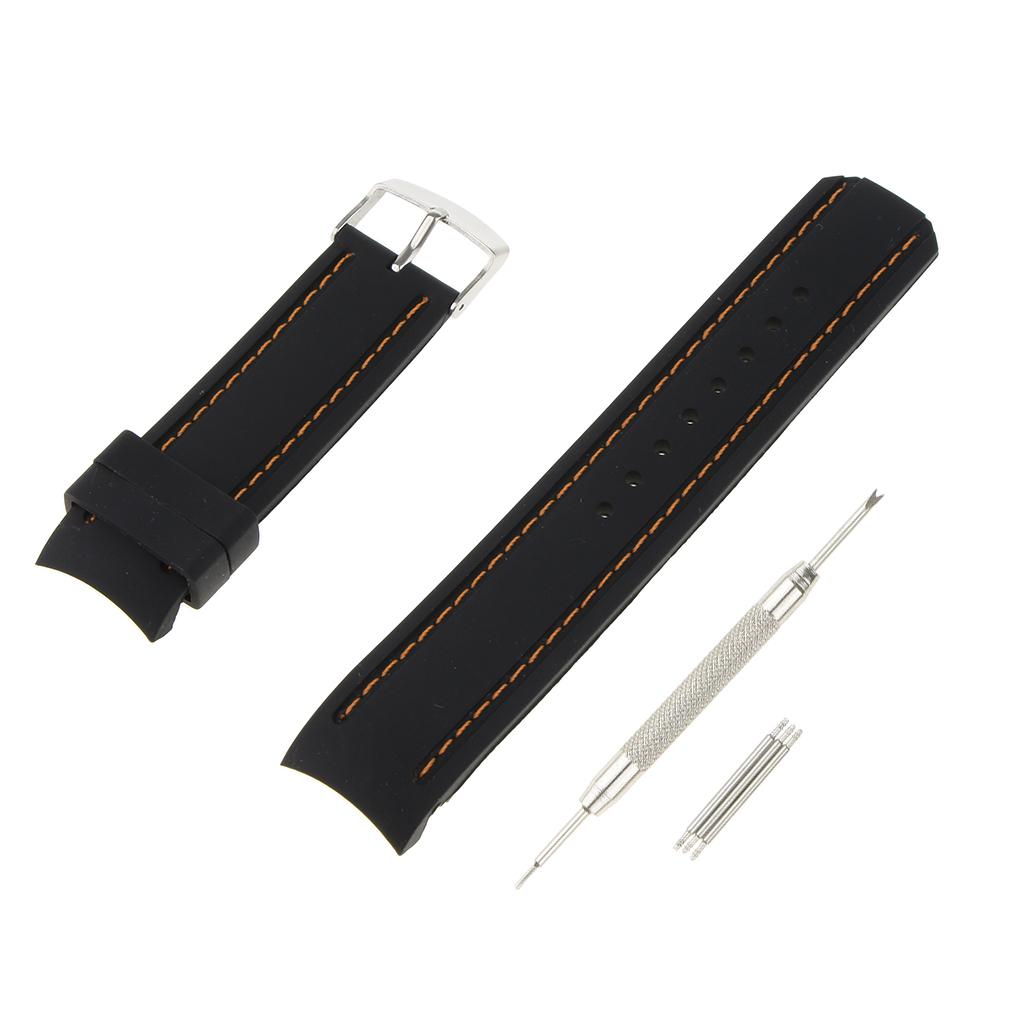22mm Black Silicone Sport Watchband Strap Stitch Wristband Orange Stitch