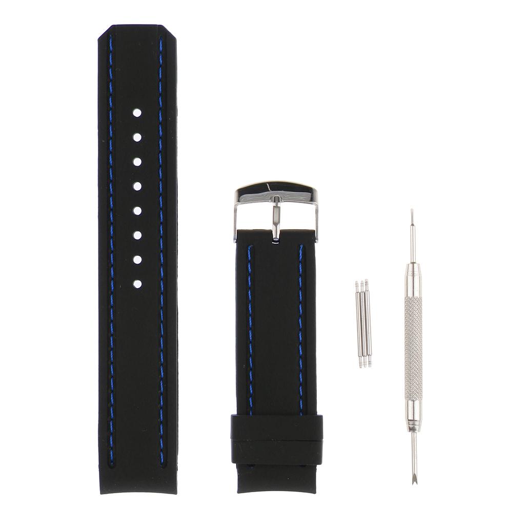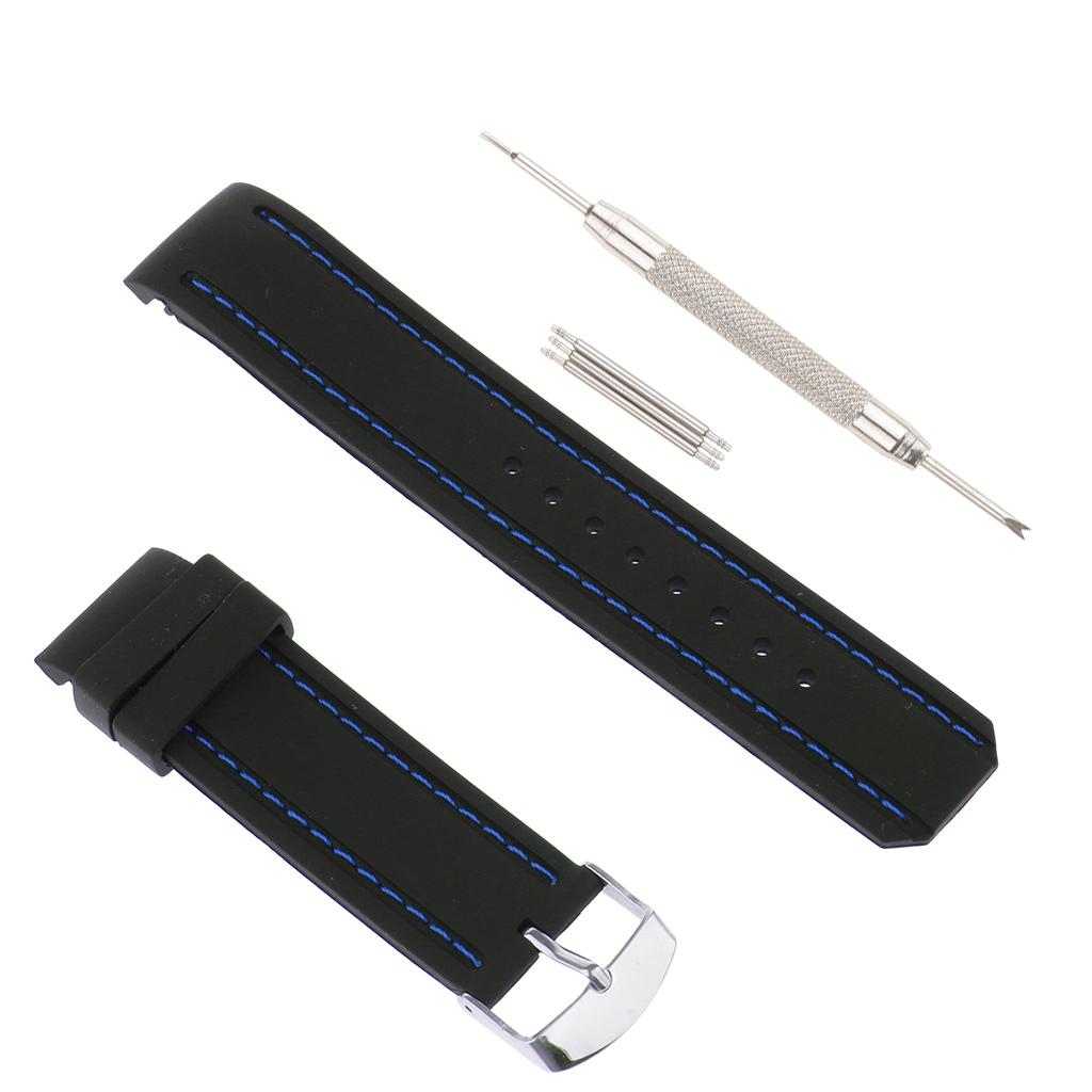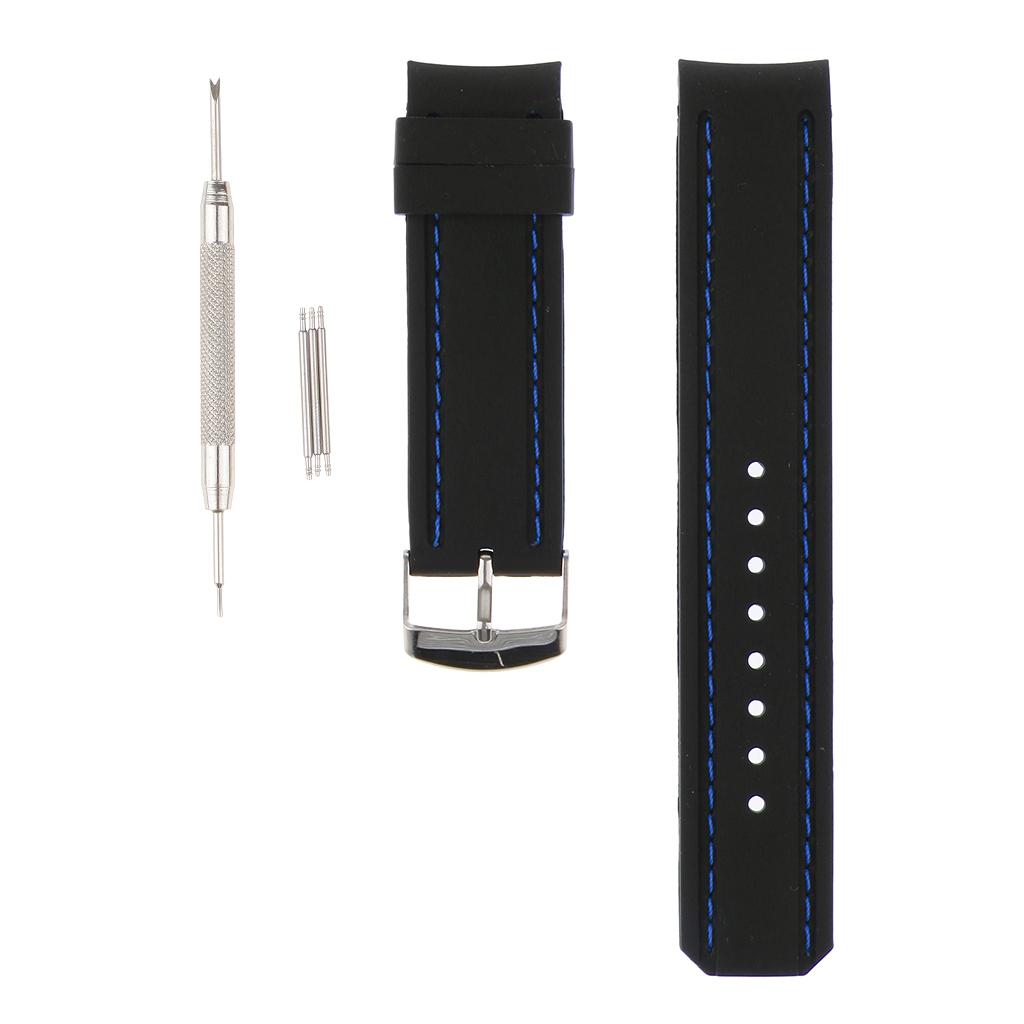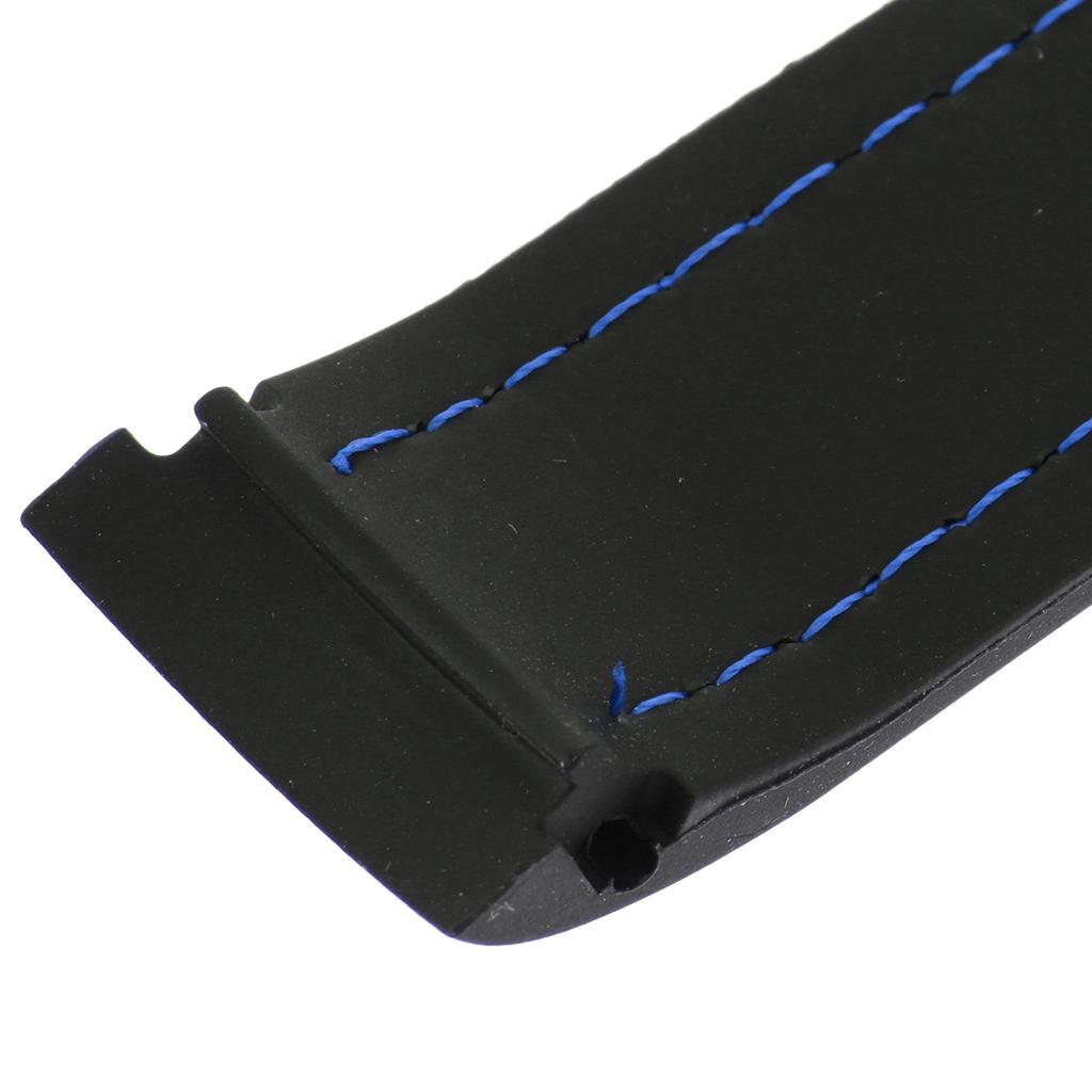 22mm Black Silicone Sport Watchband Strap Stitch Wristband Royal Blue Stitch