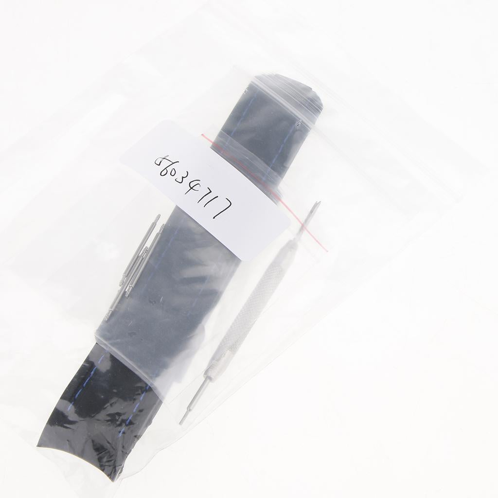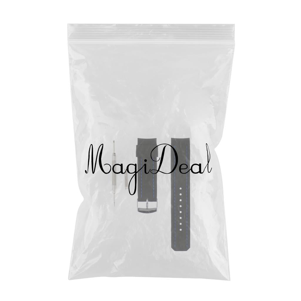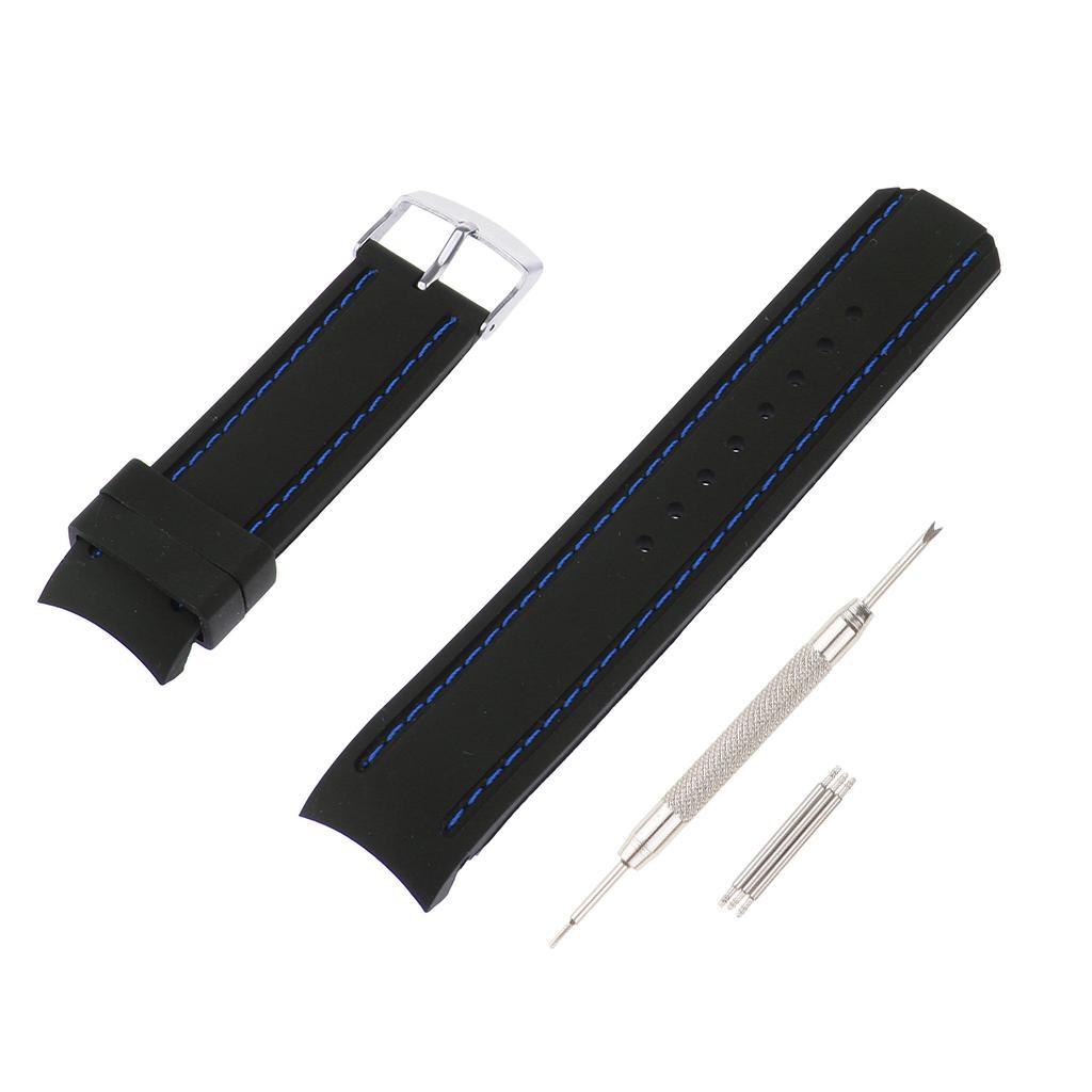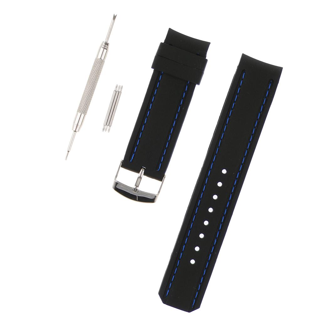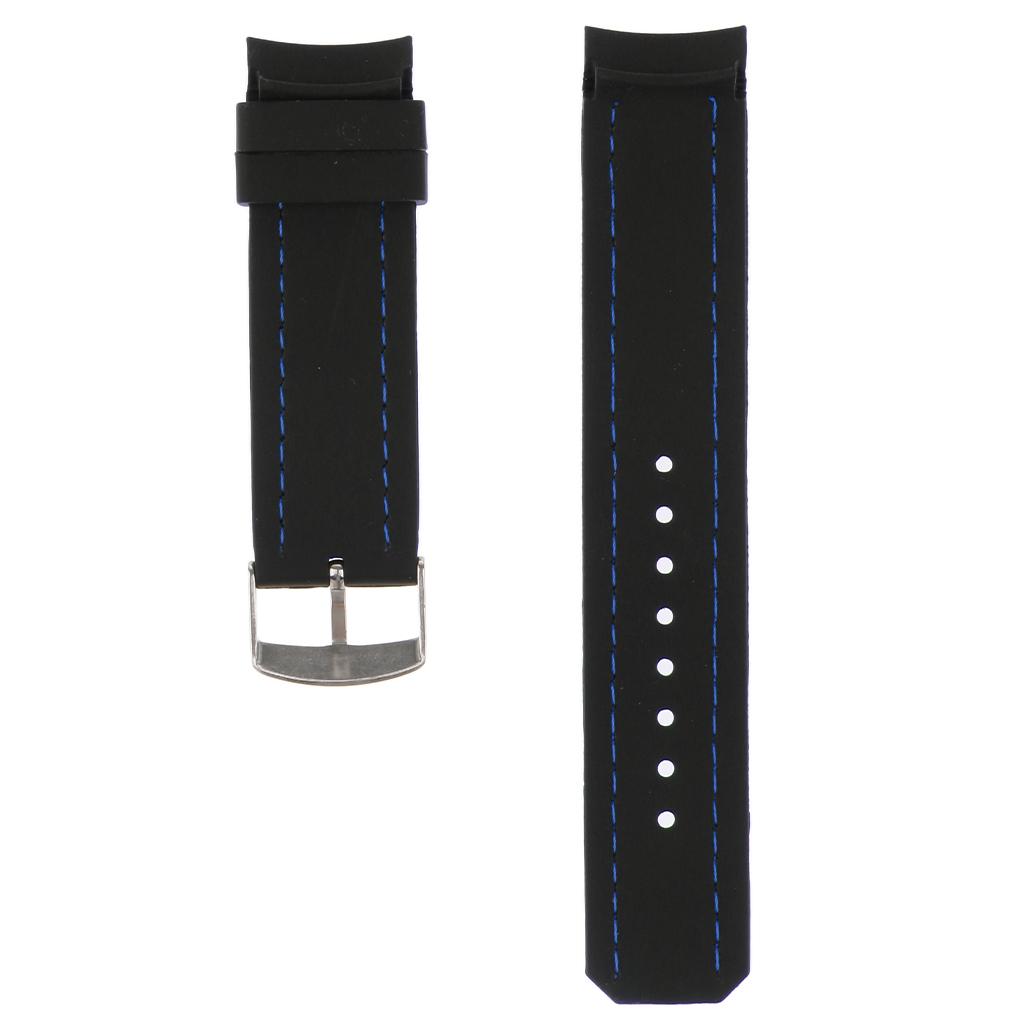22mm Black Silicone Sport Watchband Strap Stitch Wristband Royal Blue Stitch
