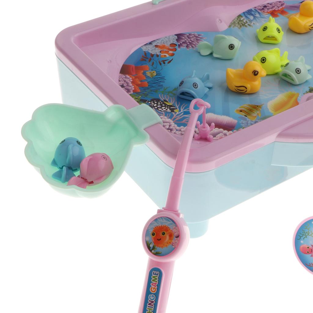 Various musical song for play, pool can be added into water & spinning the fishing pole to reel the fish in.