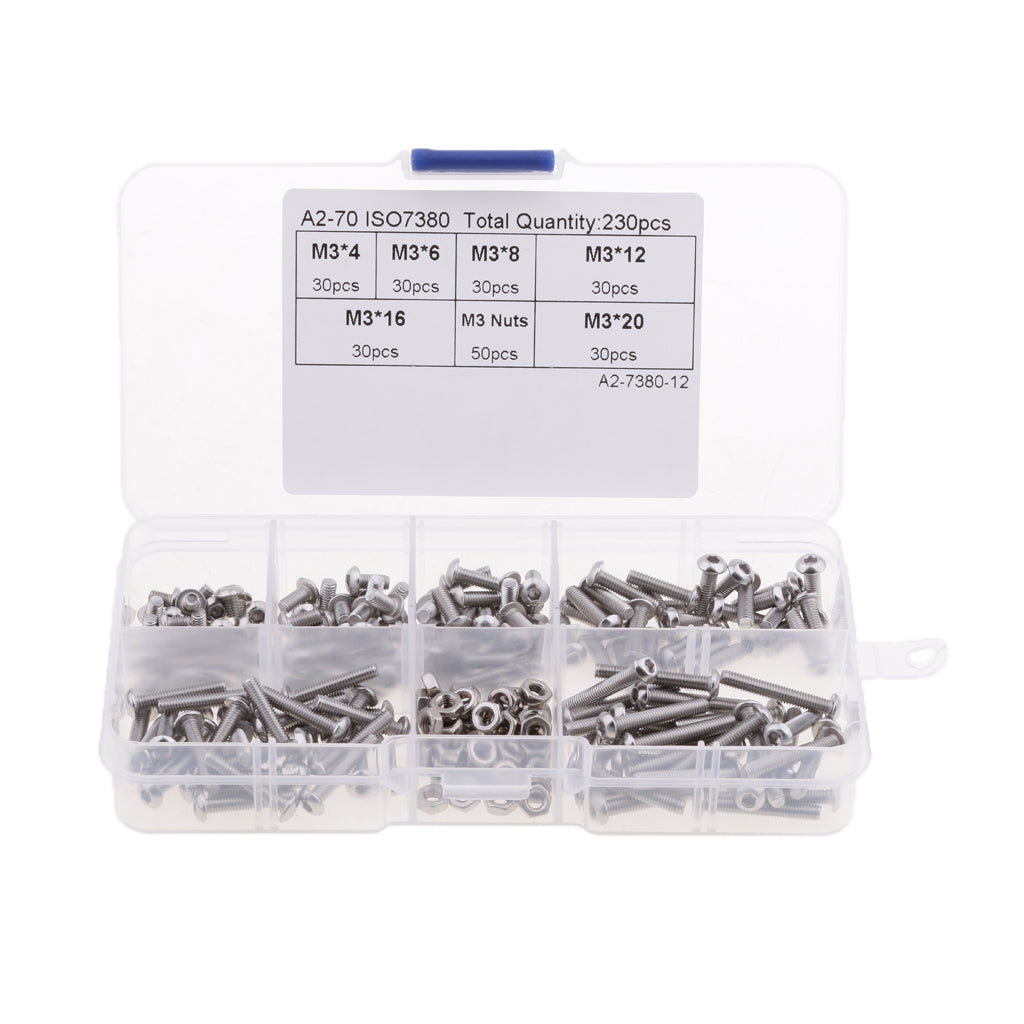 230Pcs M3 Stainless Steel Button Head Hex Socket Screw and Hex Nuts.