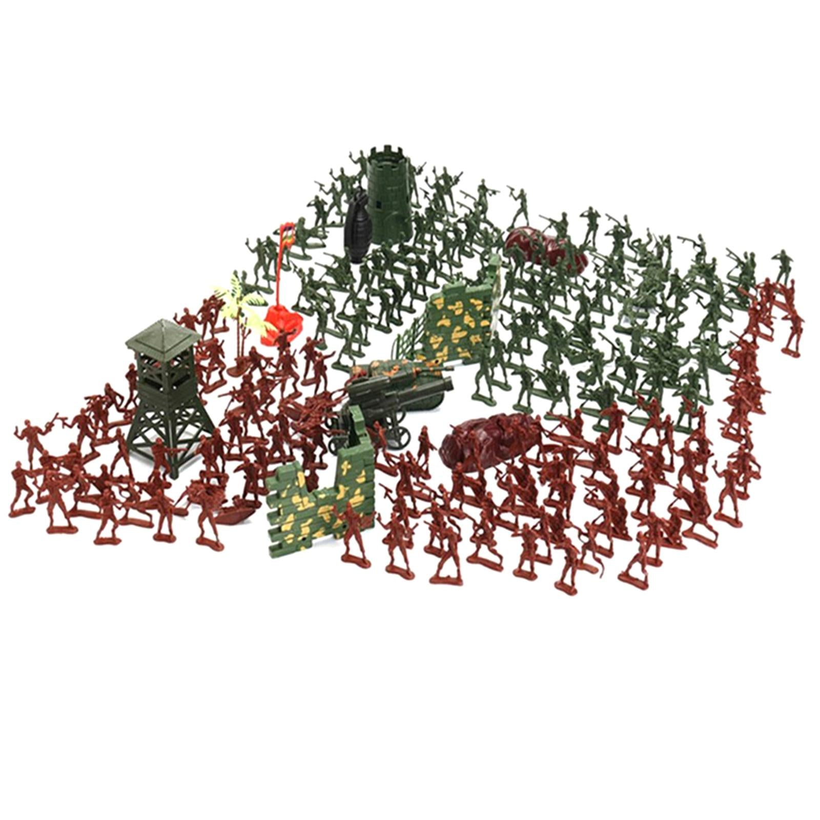 Includes approx. 224 pieces 4cm soldiers figures (in 2 colors), 1 Sentry Station, 1 Lookout Tower and other accessories (we will send randomly, some small accessories will be different)