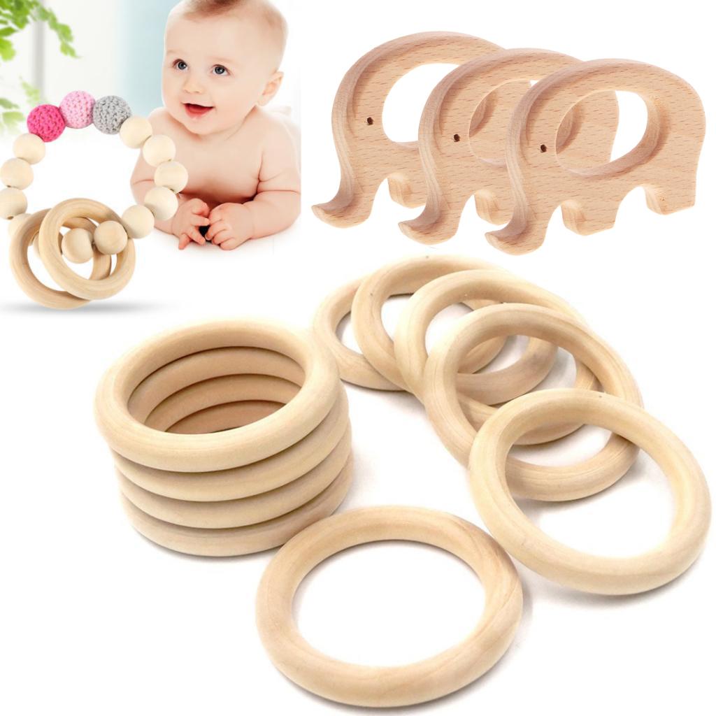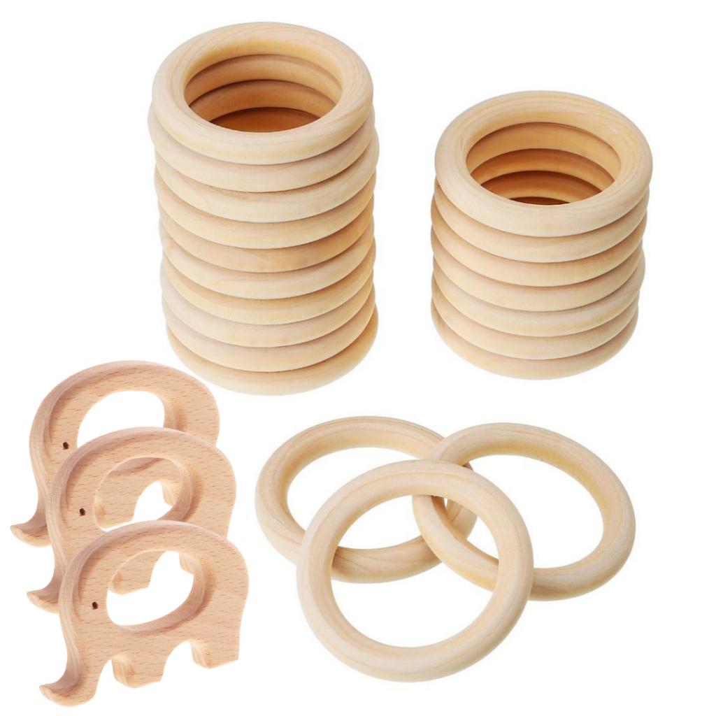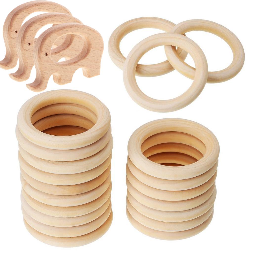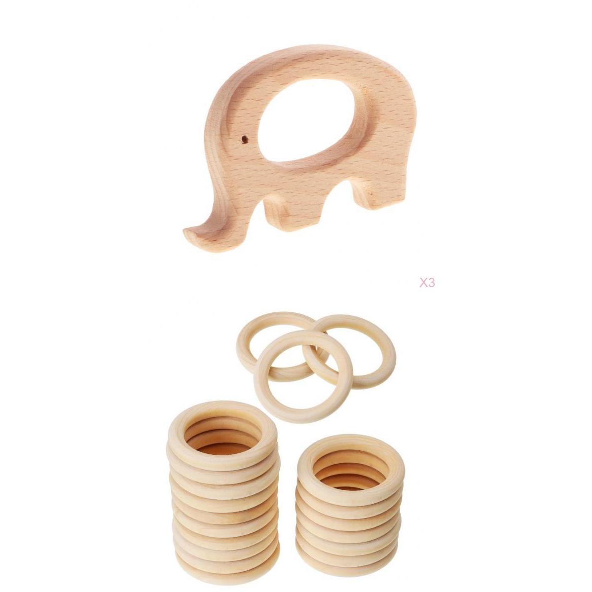23pcs Natural Unfinished Maple WoodenTeether Rings Baby Elephant Teething Toy Handmade DIY Gift