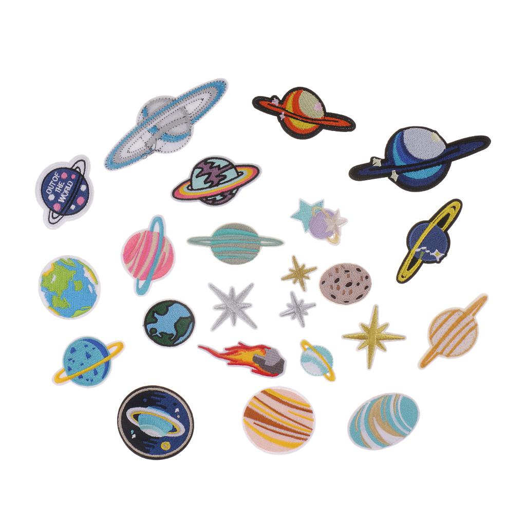 23 pieces star space seriesassorted size and patterns embroidery applique, exquisite and bright-colored , perfect for DIY crafts projects,sewing accessory.