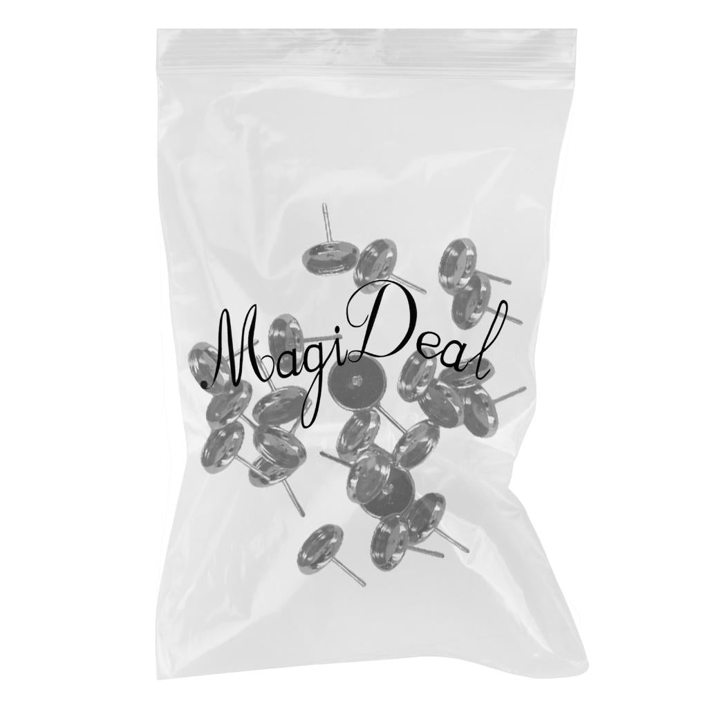 24 Pieces Blank 8mm Earring Tray Cabochon Setting Jewelry DIY Jet Black