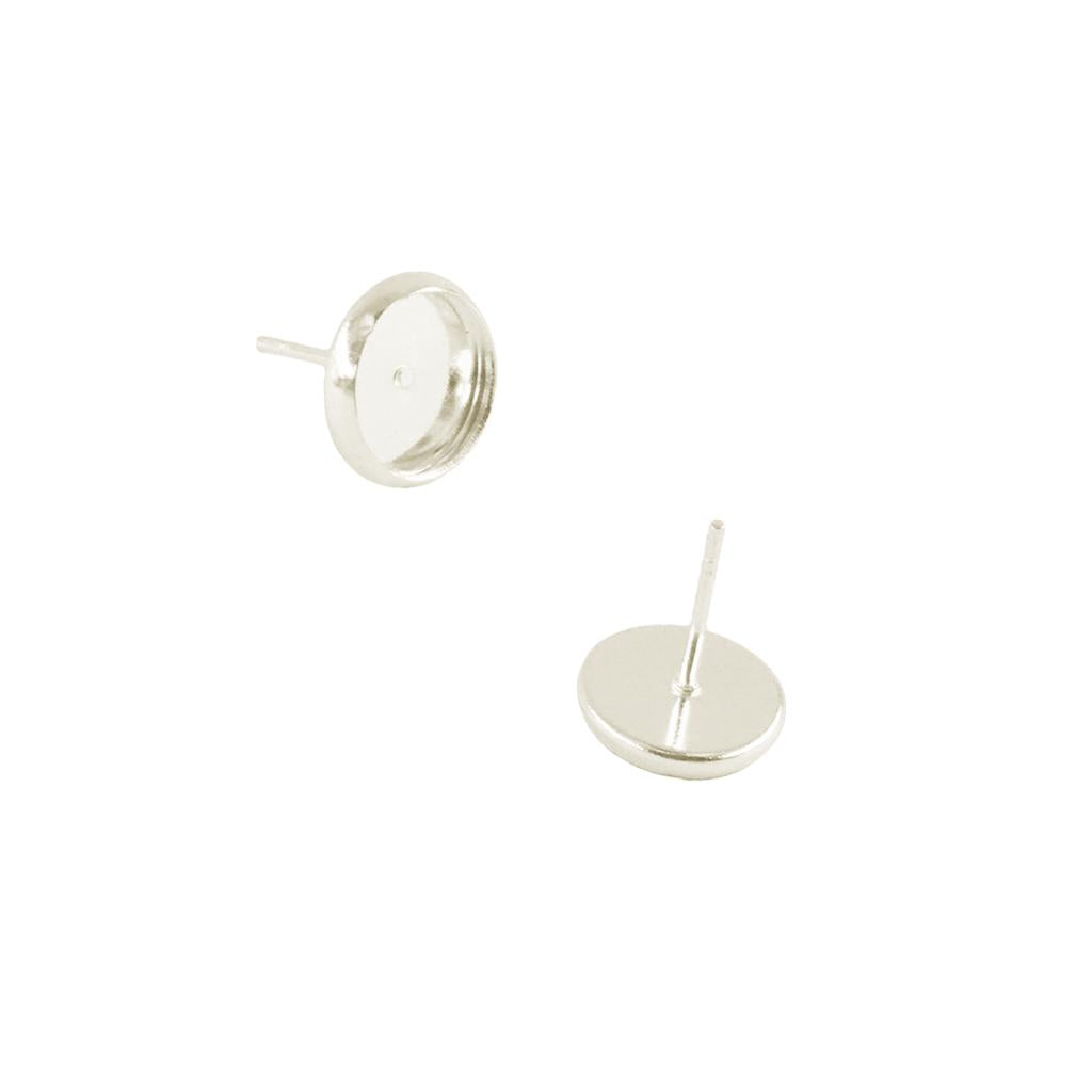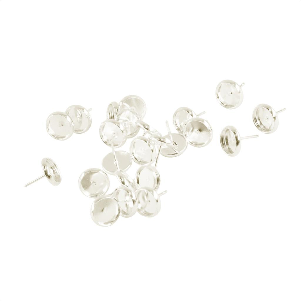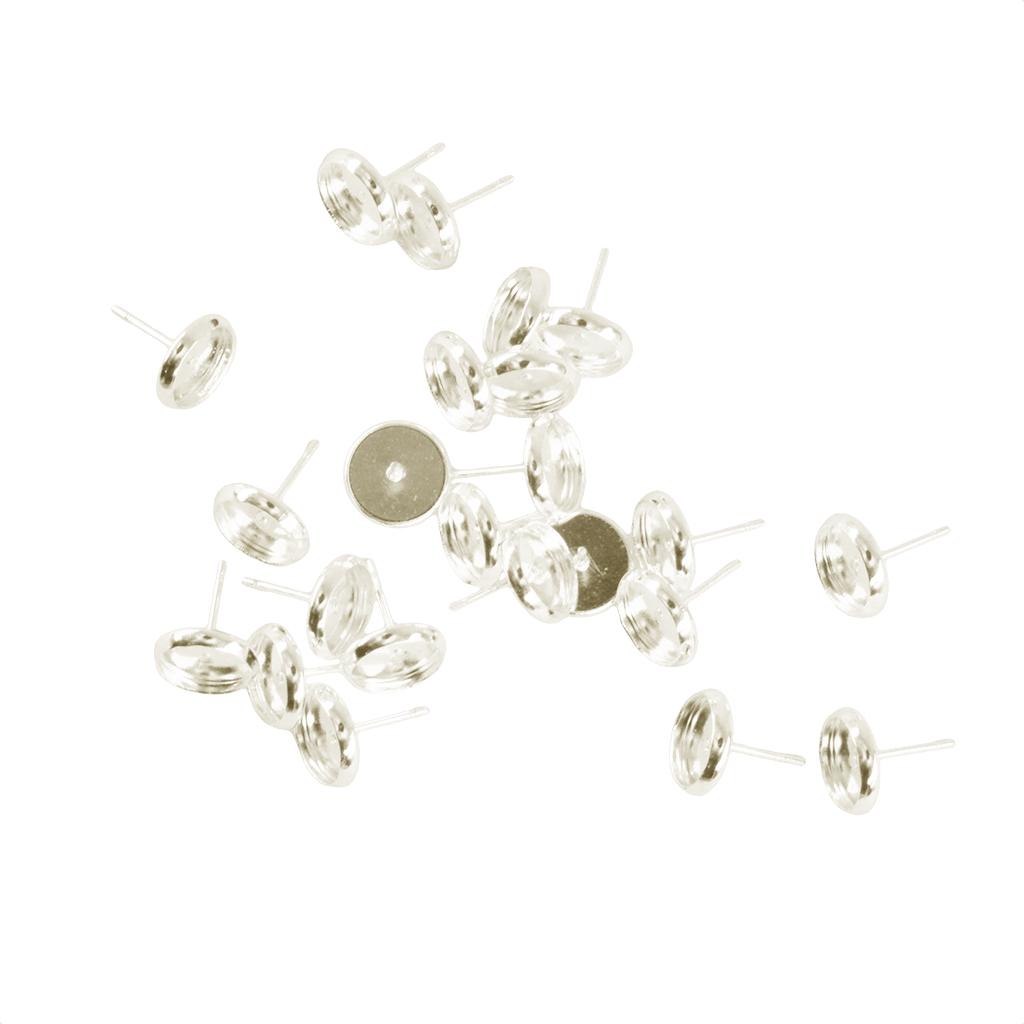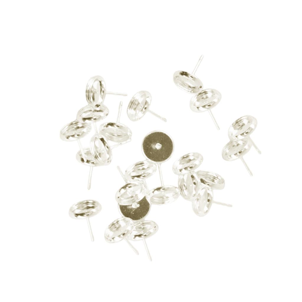 24 Pieces Blank 8mm Earring Tray Cabochon Setting Jewelry DIY Silver white