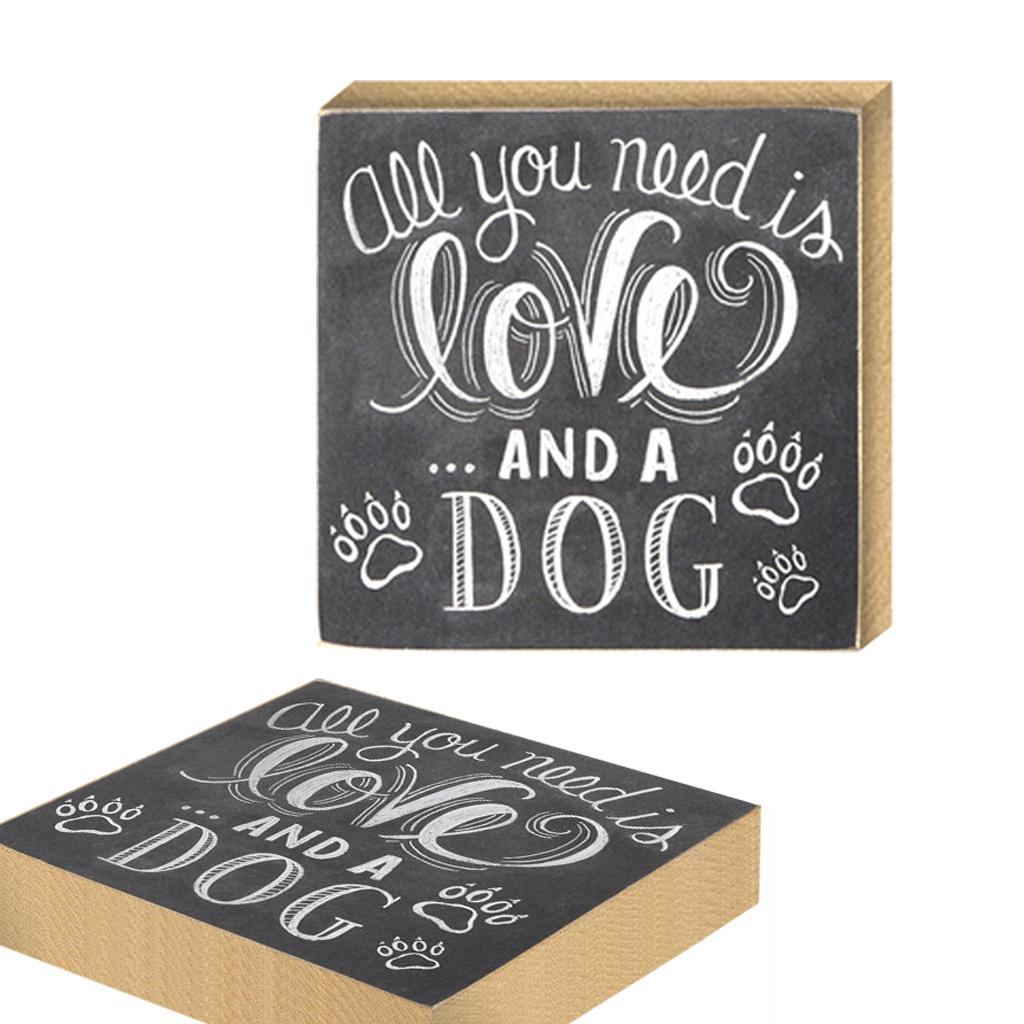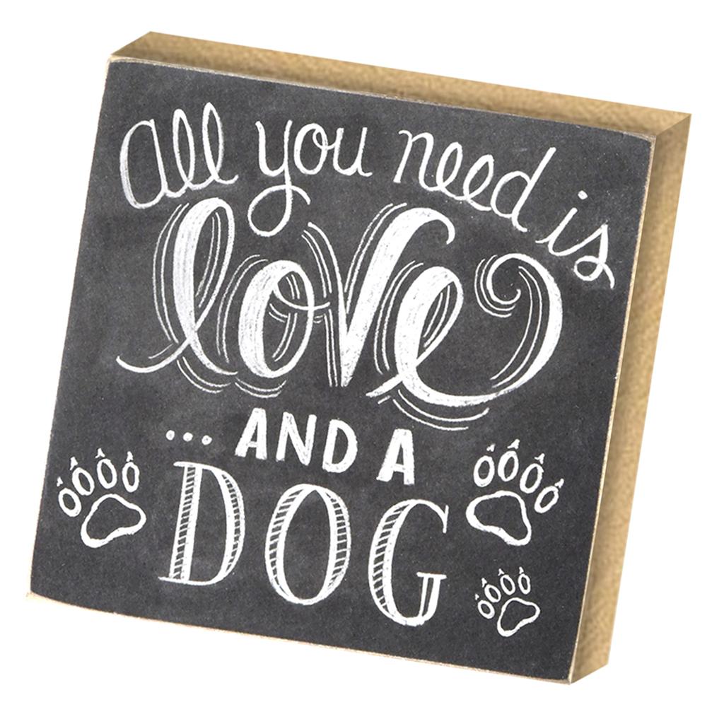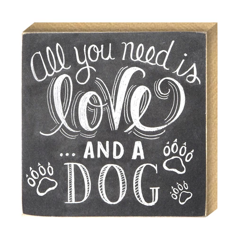 Shabby and vintage in design painted white words "all you need li love and a dog"