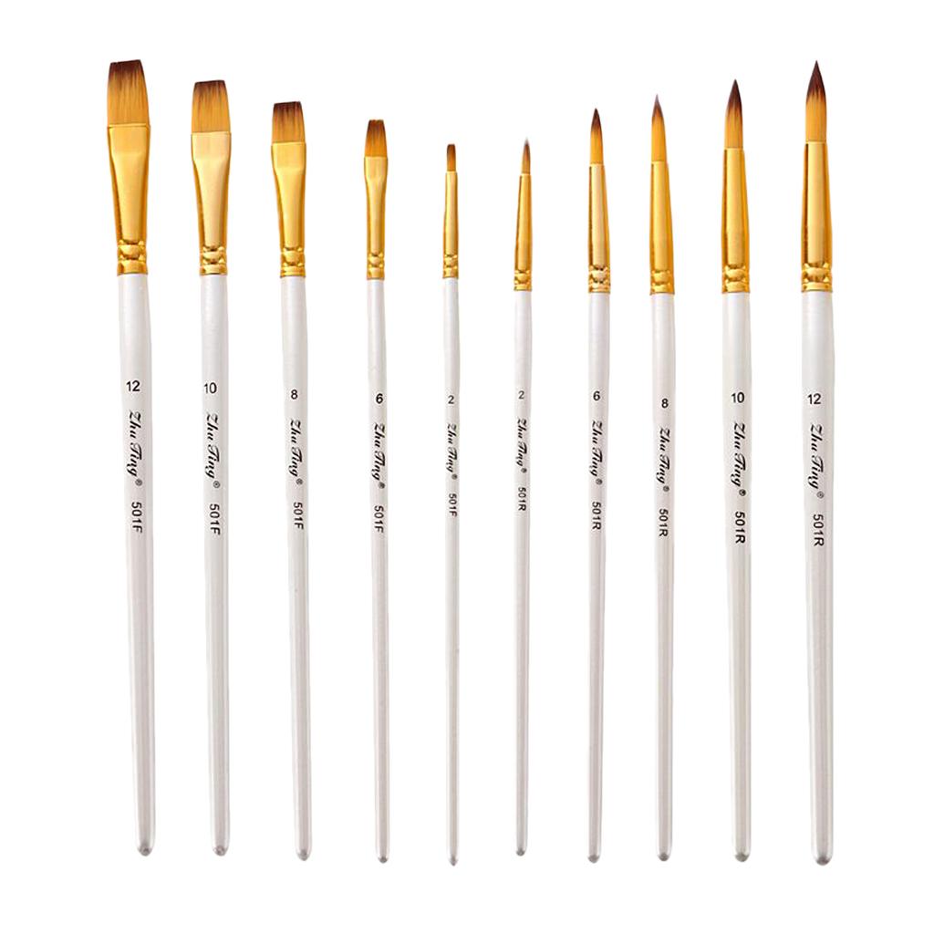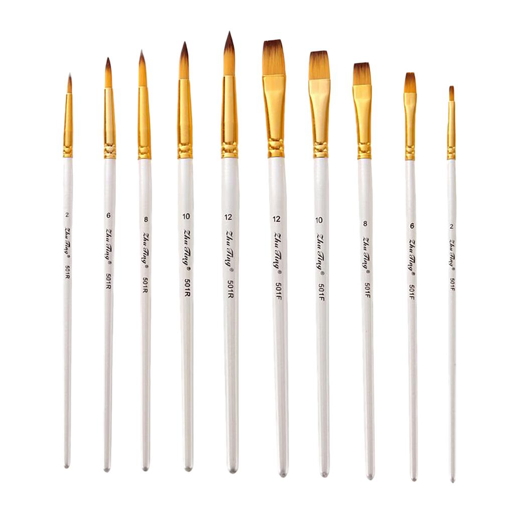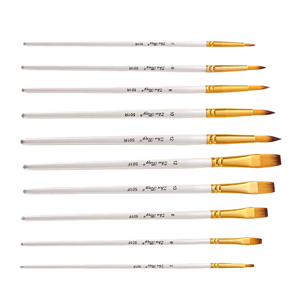 10x Wood Tip And Flat Nylon Paint Brush For Artist Beginner Student Painting