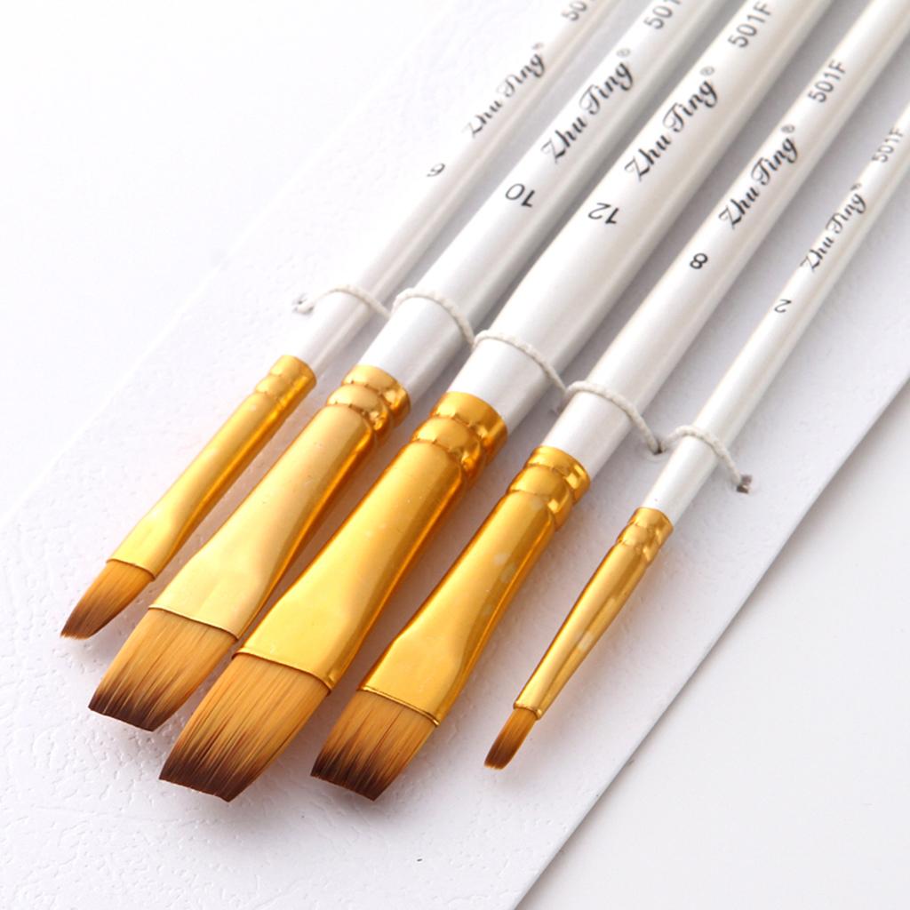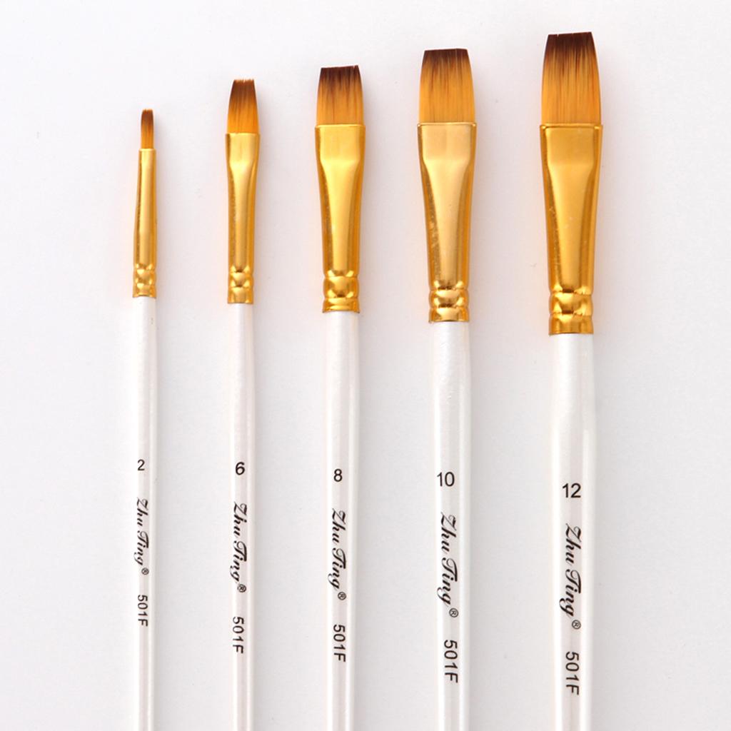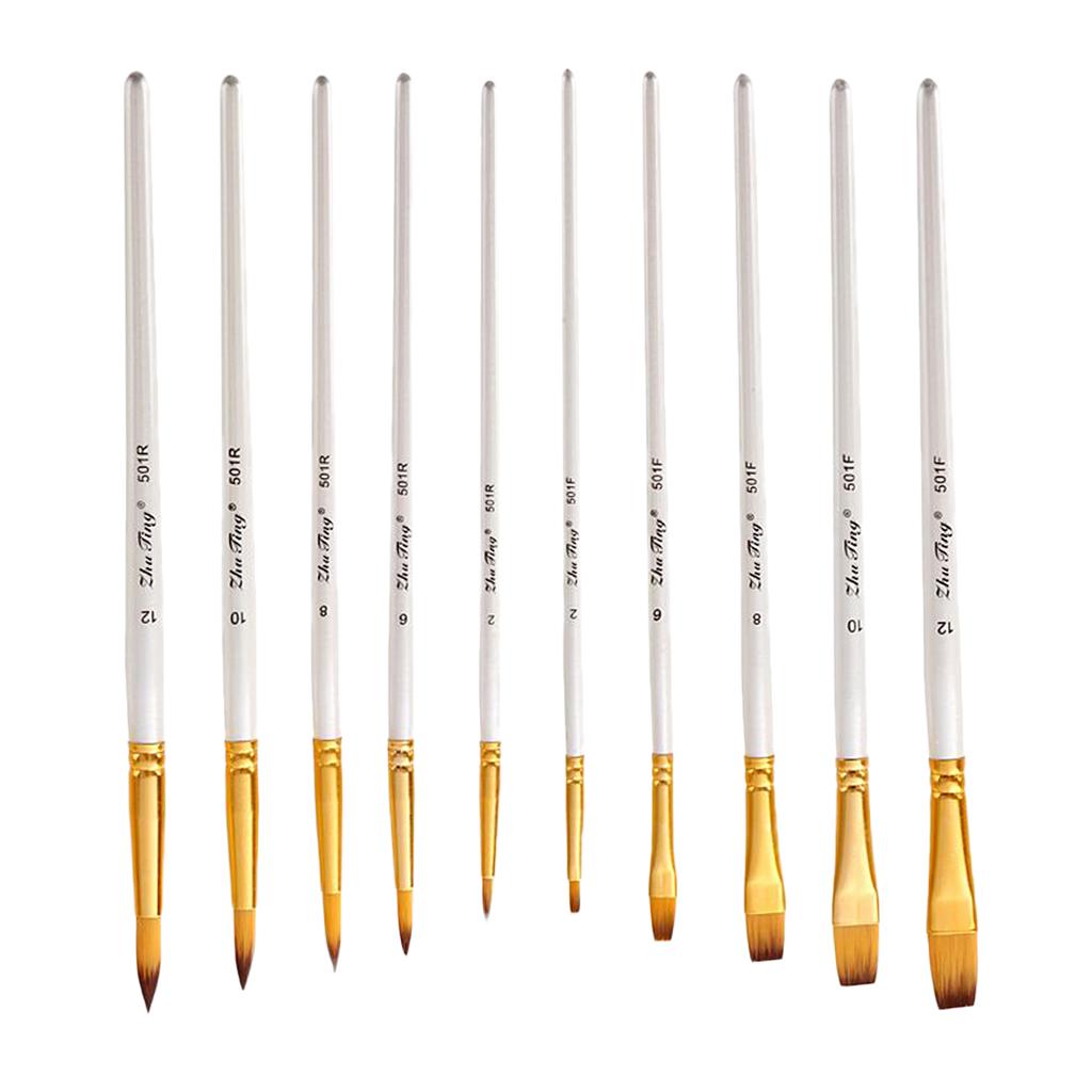 10x Wood Tip And Flat Nylon Paint Brush For Artist Beginner Student Painting