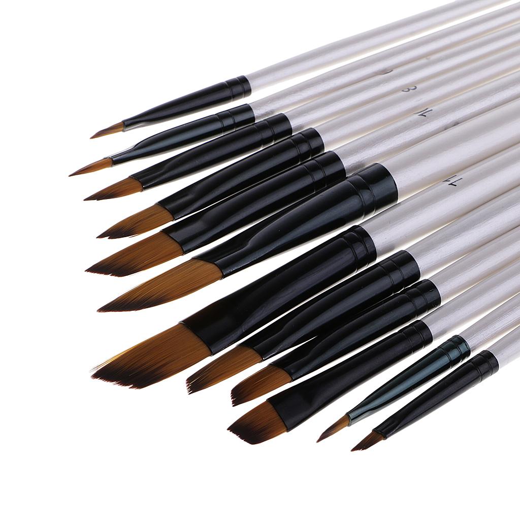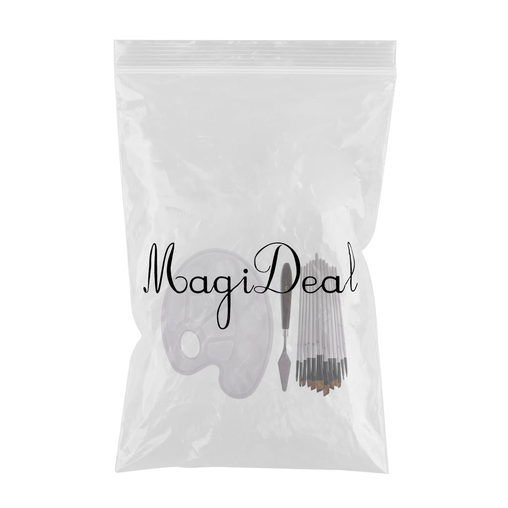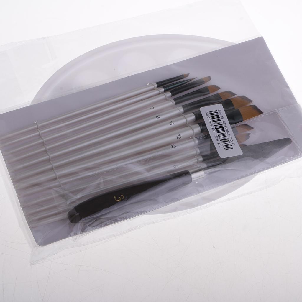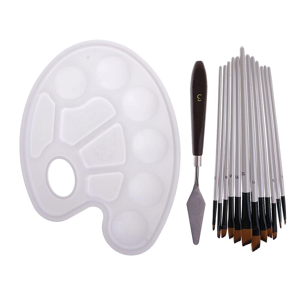 12 Pieces Art Acrylic Oil Watercolor Artist Paint Brushes With Palette and Color Mixing Cutter