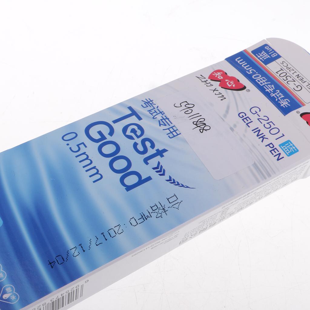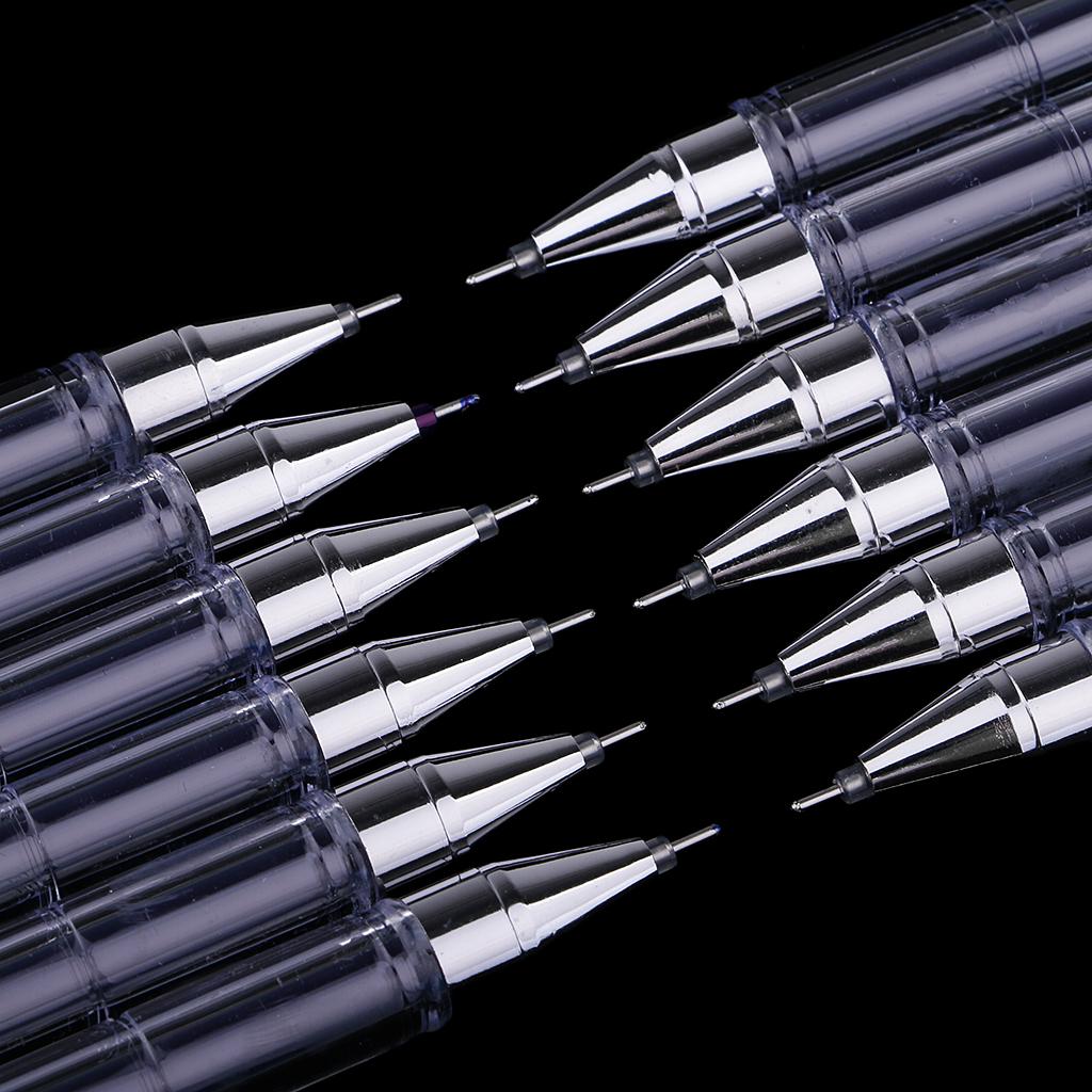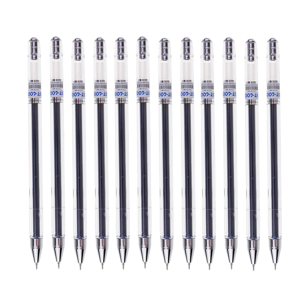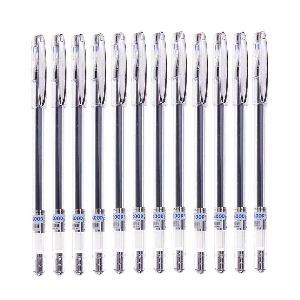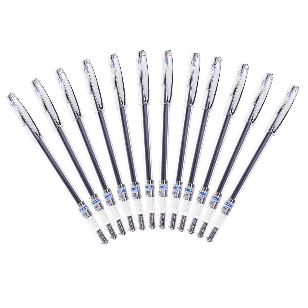 Gel ink pens set come in 12pcs in paper box, each pen contains black ink and has a 0.5mm needle tip.