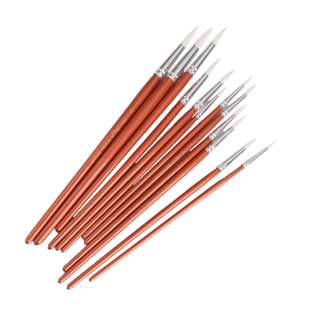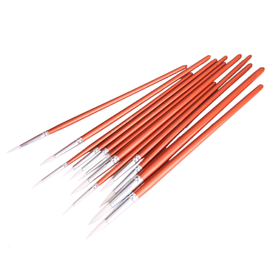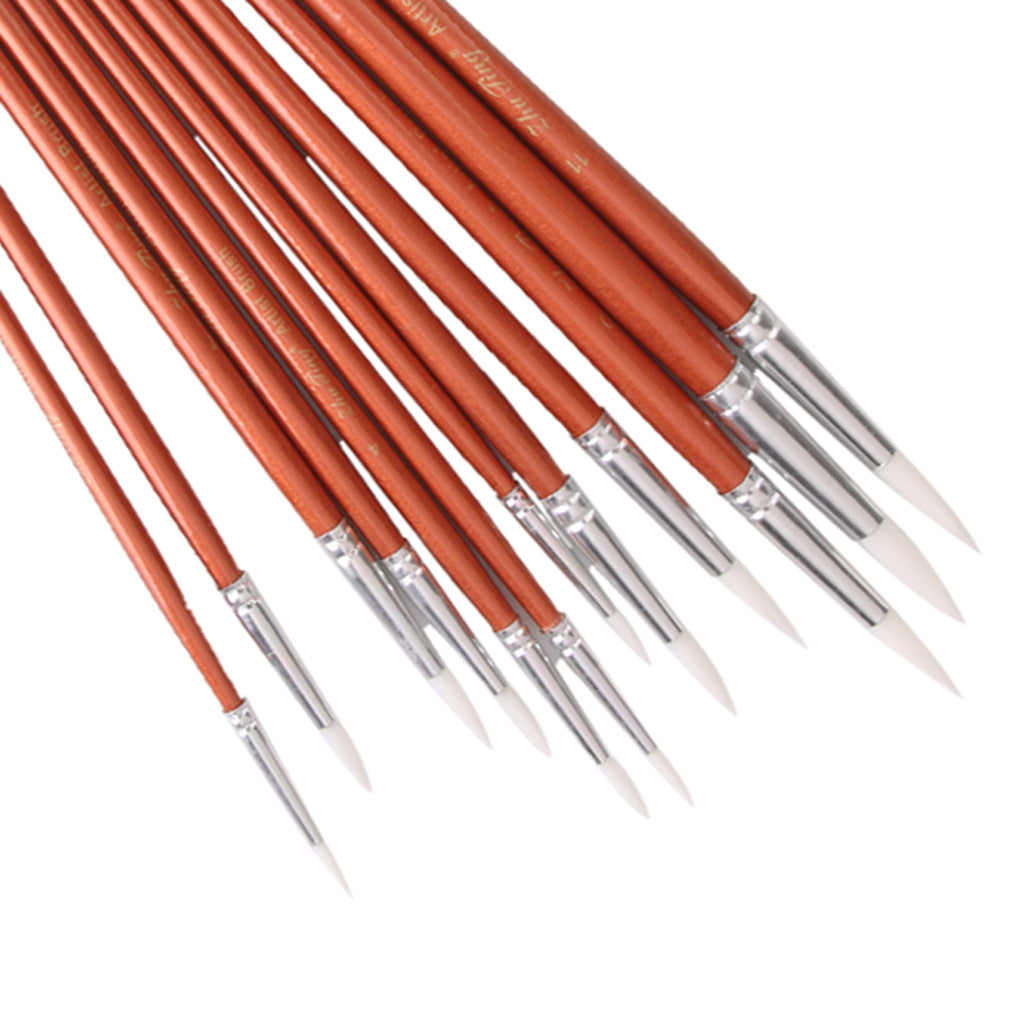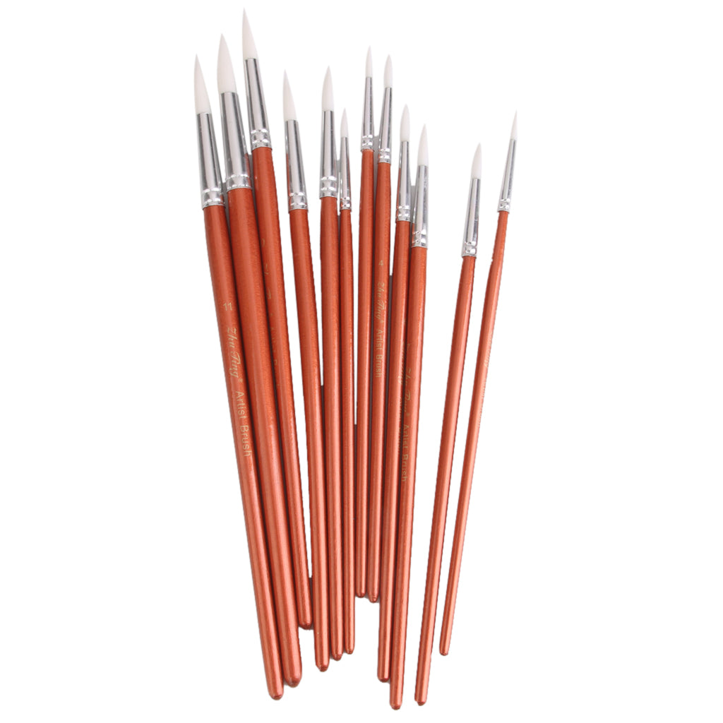 12pcs Assorted Size Artist Painting Round Brushes Set- Orange