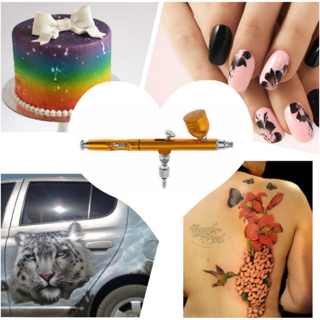 Dual-action gravity feed airbrush for fine art, nail art, temporary tattoo, cake decorating, hobbies, etc