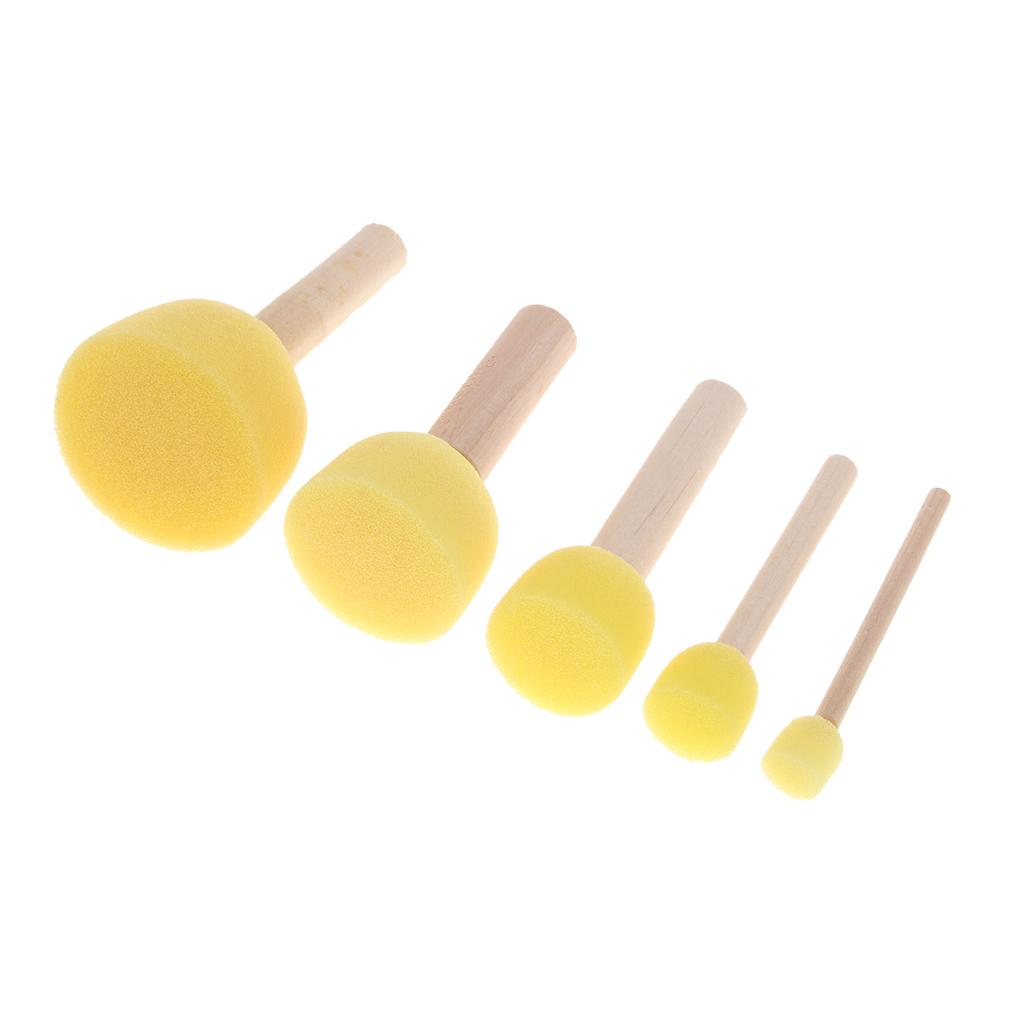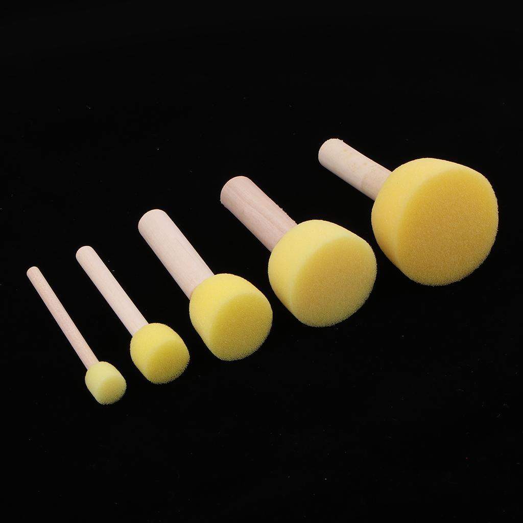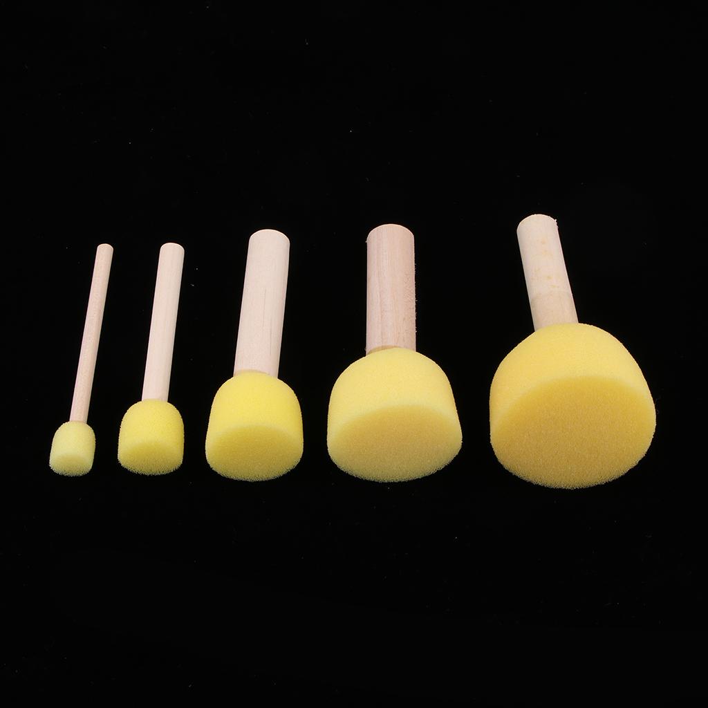 Pack of 5 sizes sponge foam brushes for kids, with different diameter of 1cm, 2cm, 3cm, 4cm, 5cm