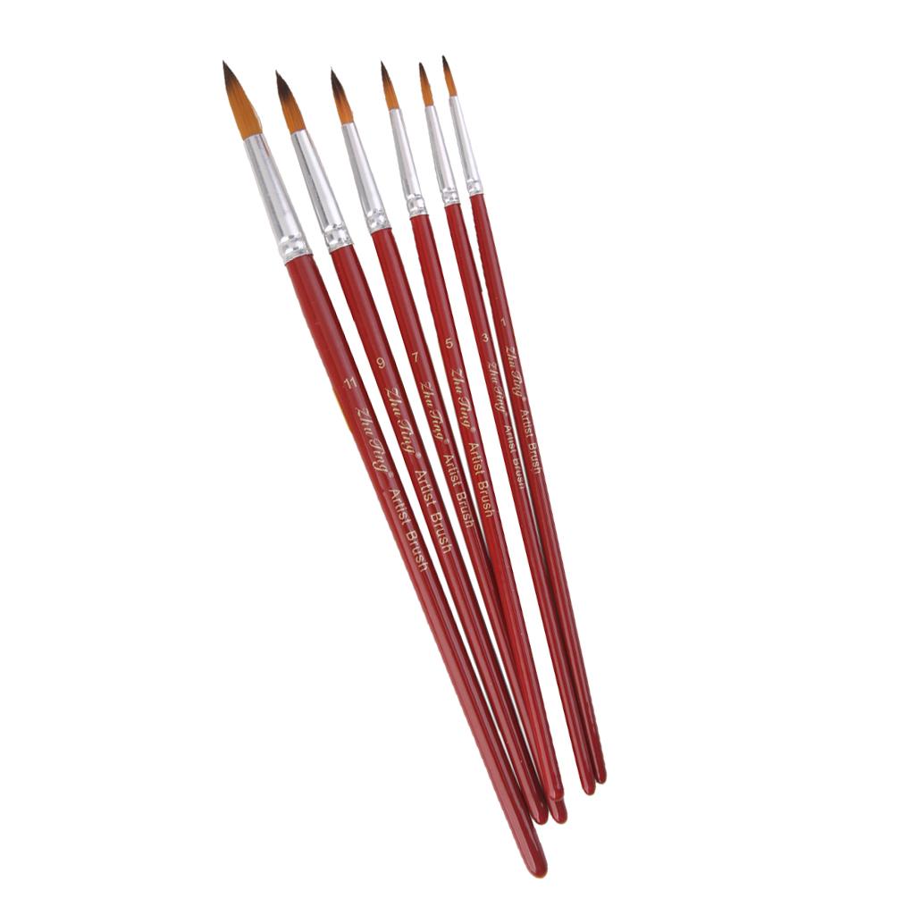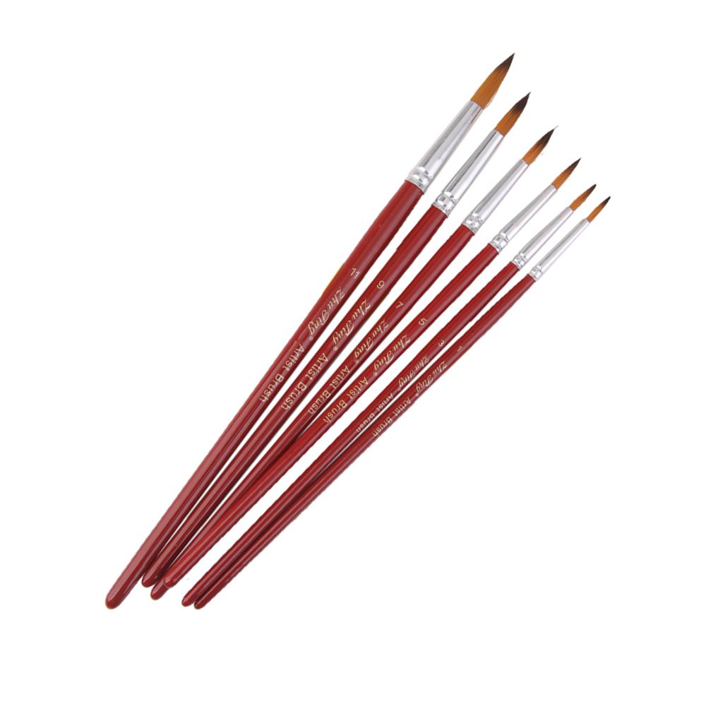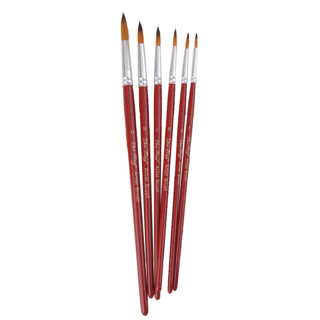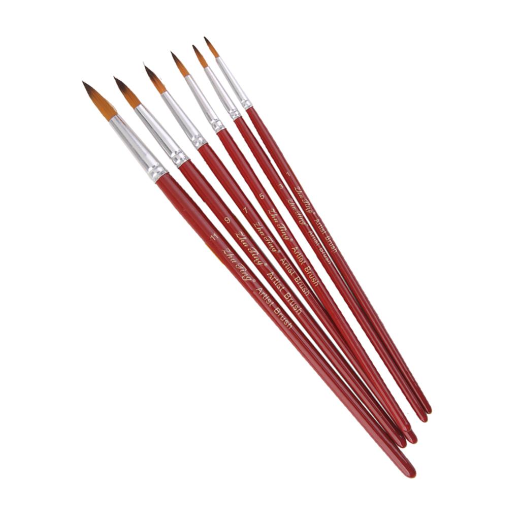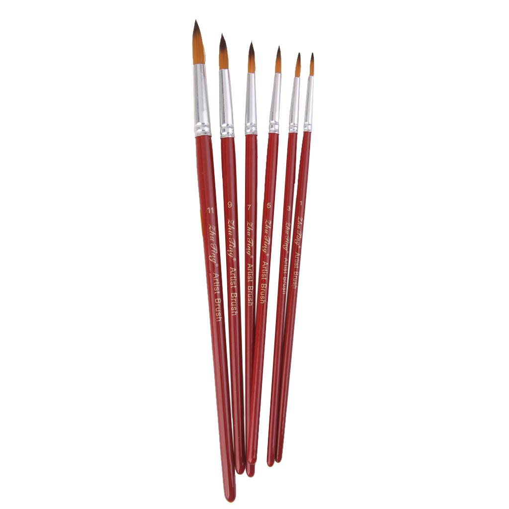 6pcs Assorted Size Artist Painting Round Tip Nylon Brushes-Dark Red