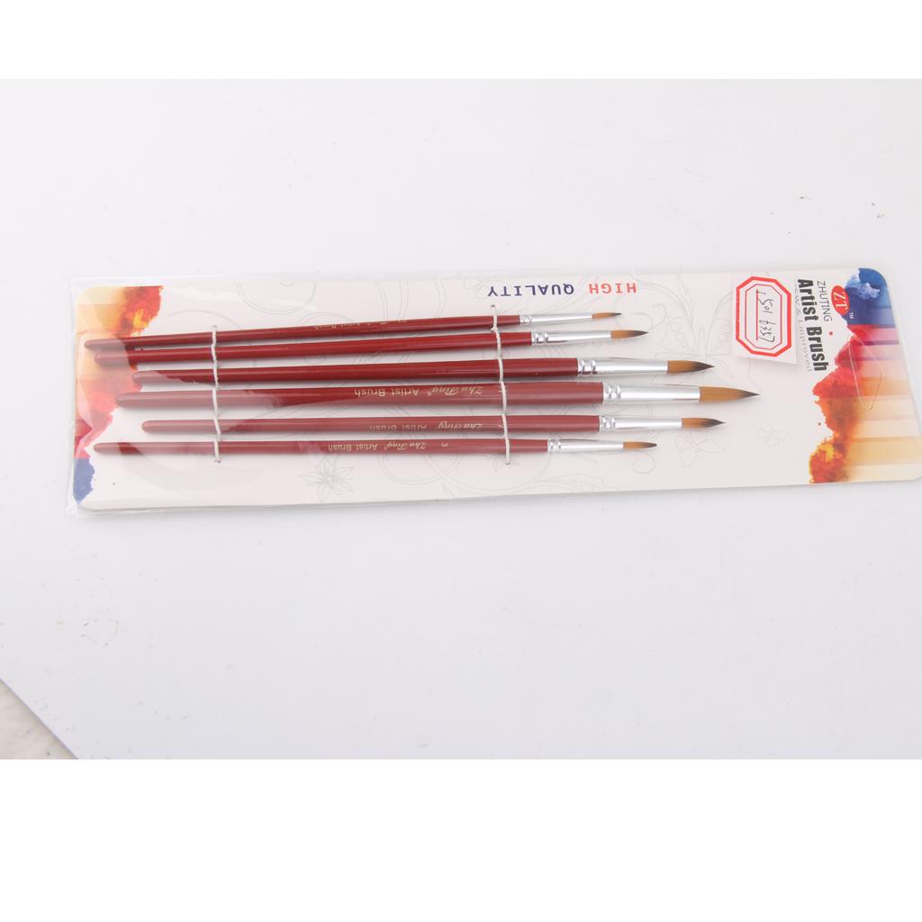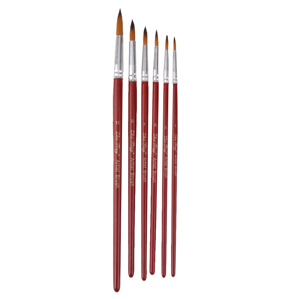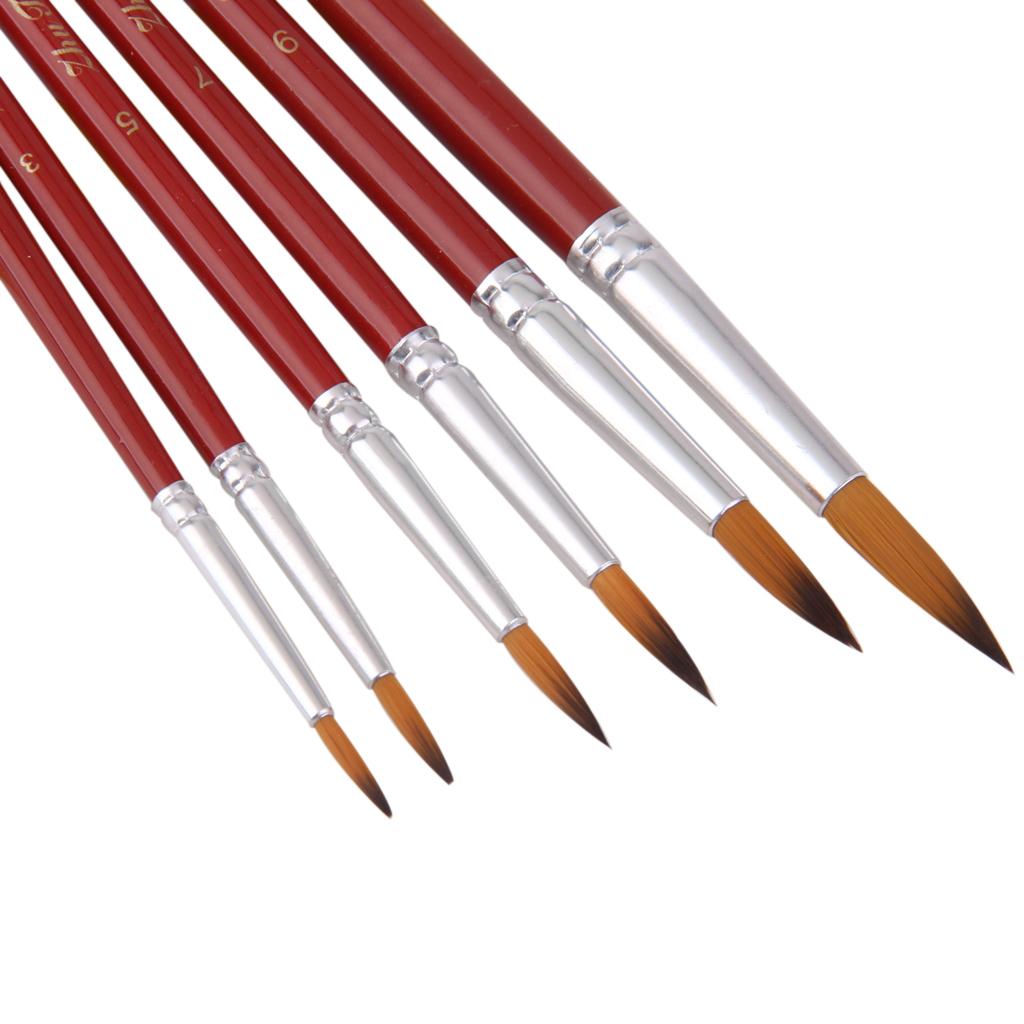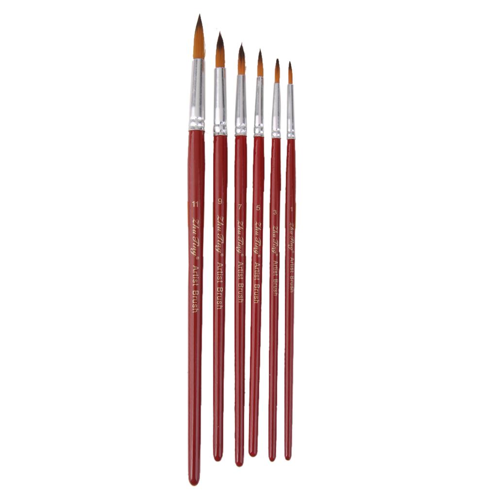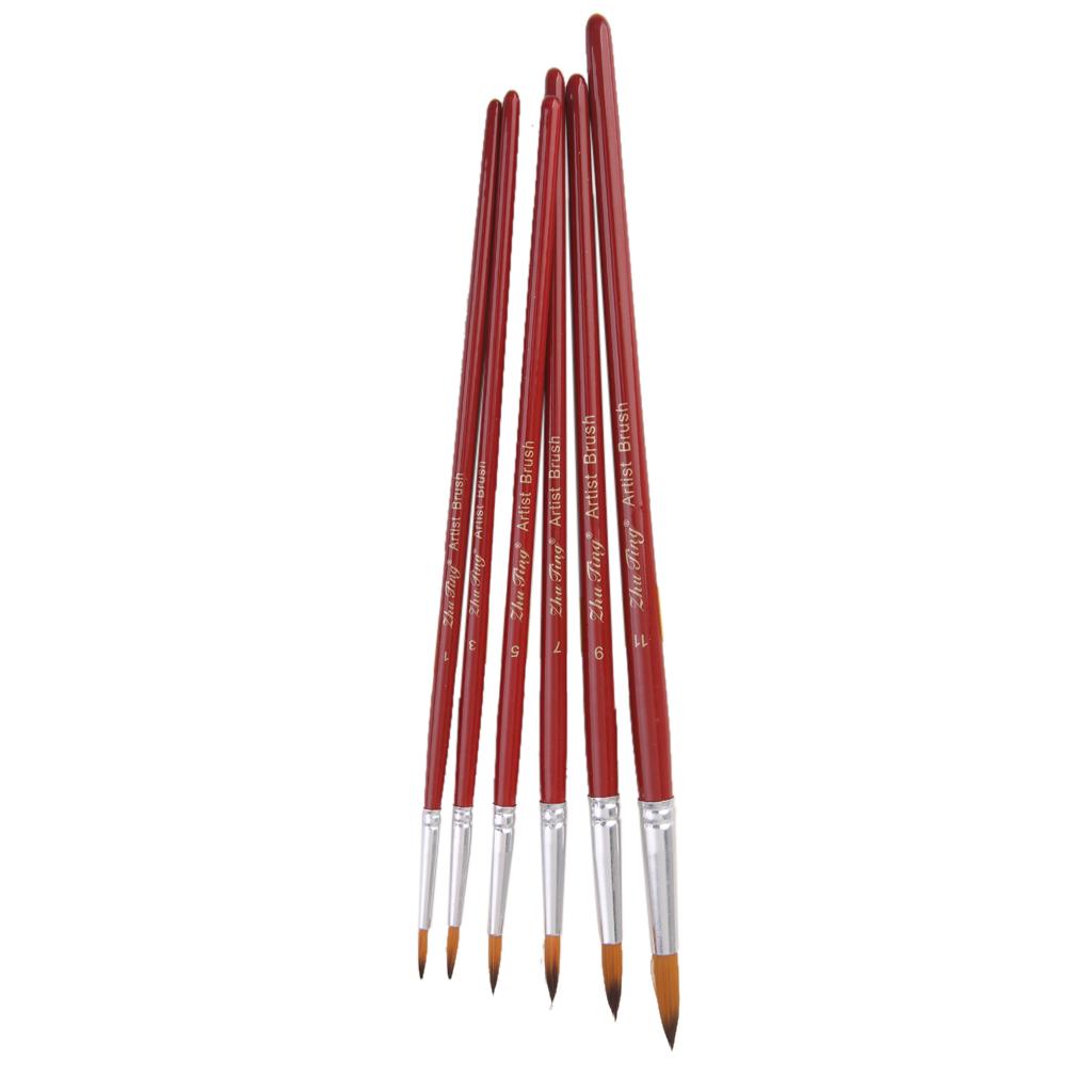 6pcs Assorted Size Artist Painting Round Tip Nylon Brushes-Dark Red