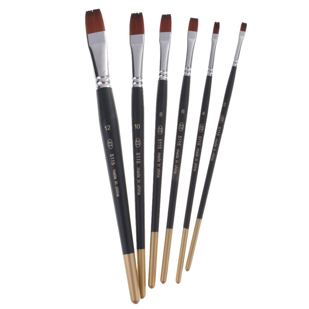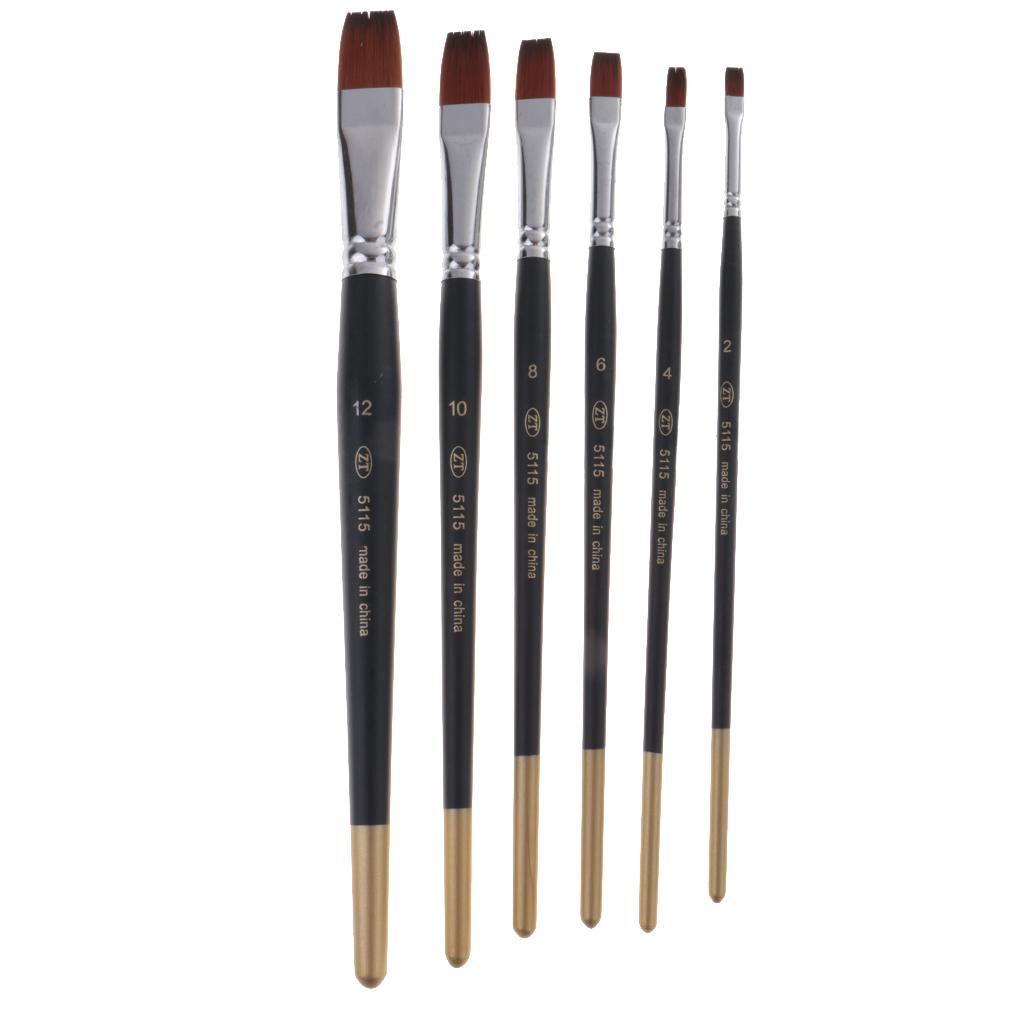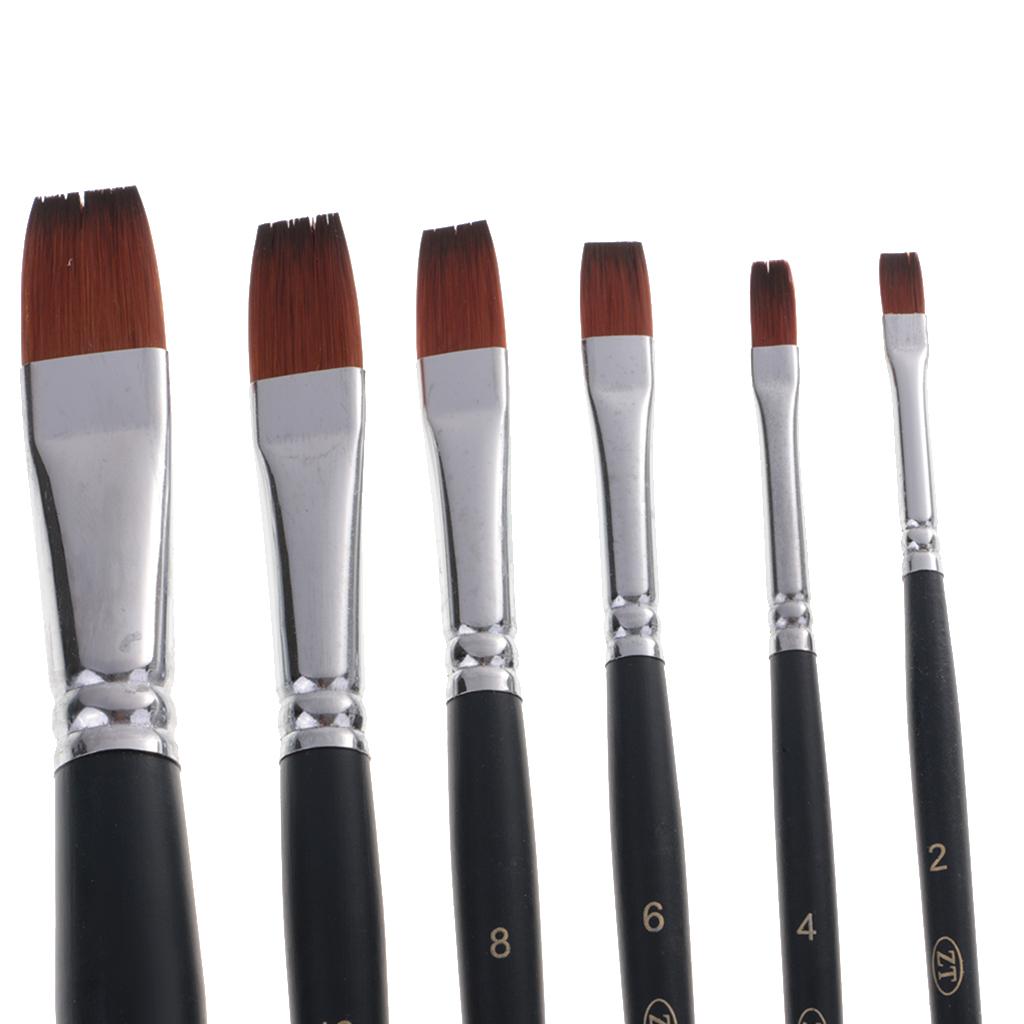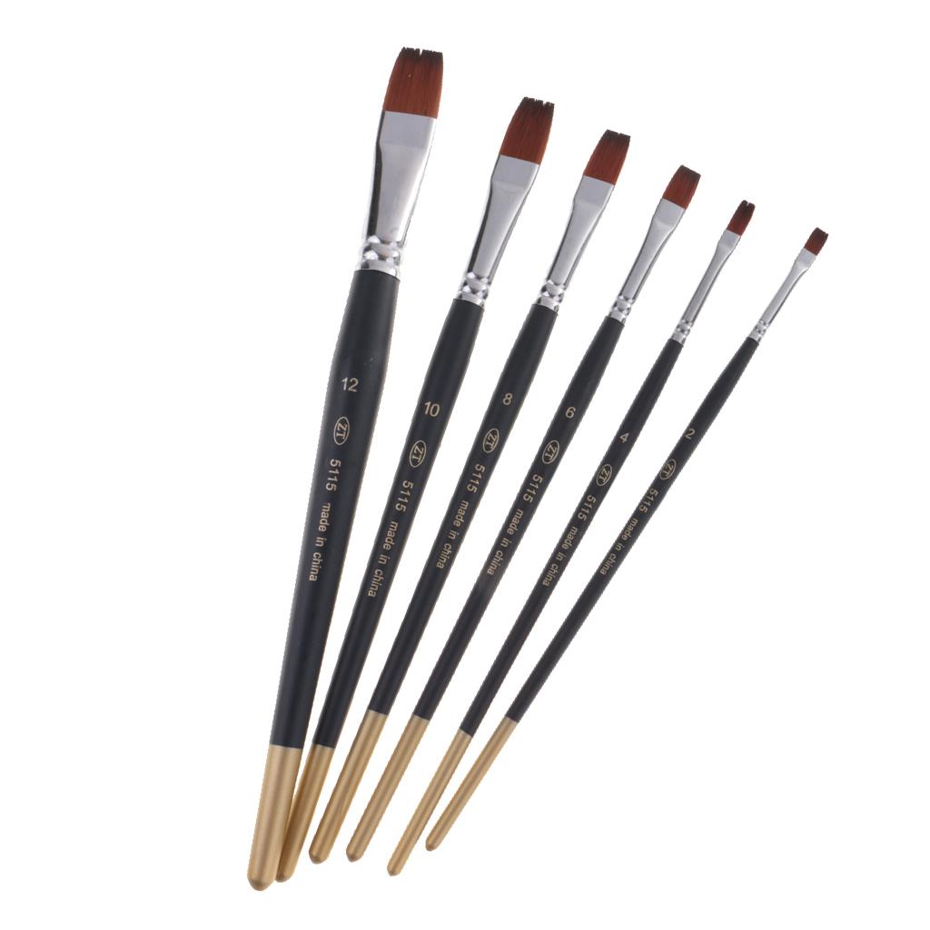 Set of 6 pieces flat tip paint brushes artists art and craft painting supplies