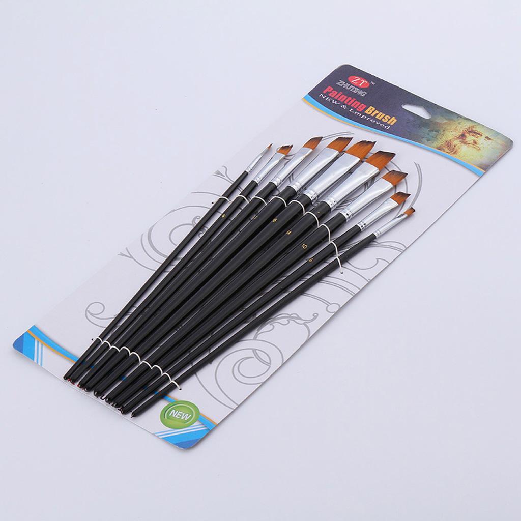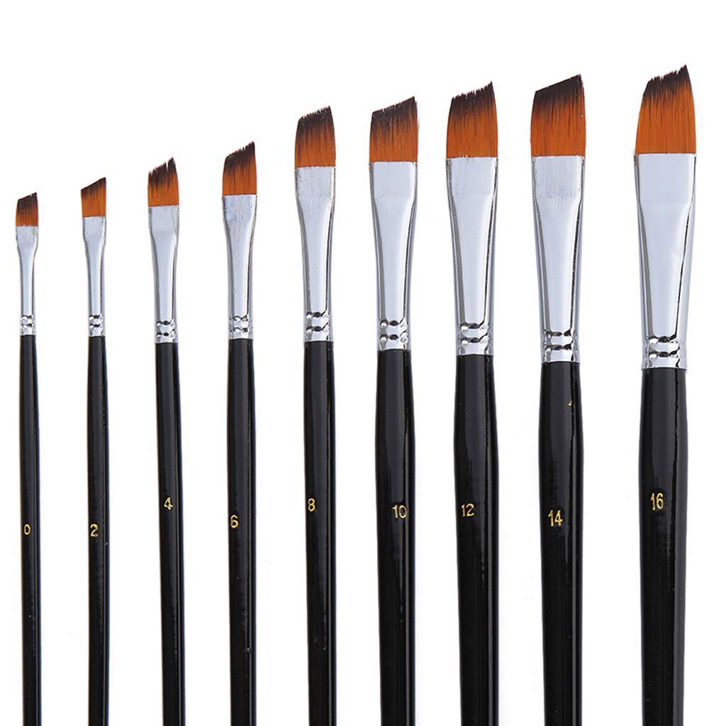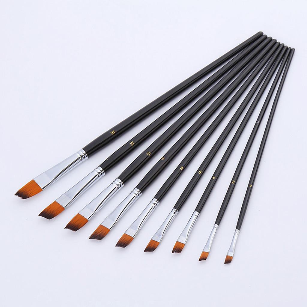 9Pcs Professional Assorted Artist Paint Brushes Set with Black Long Handle