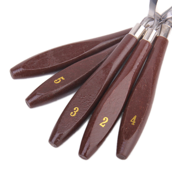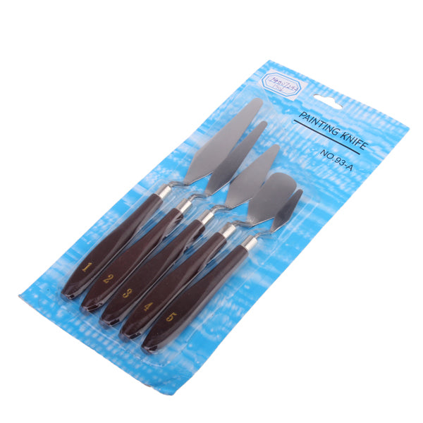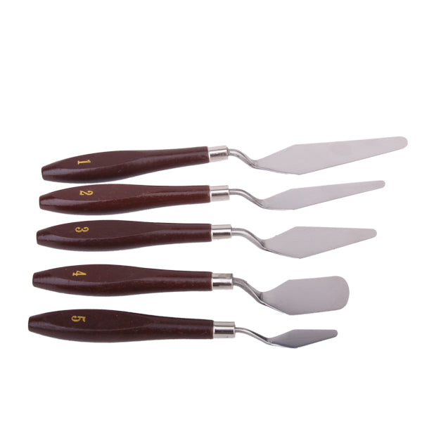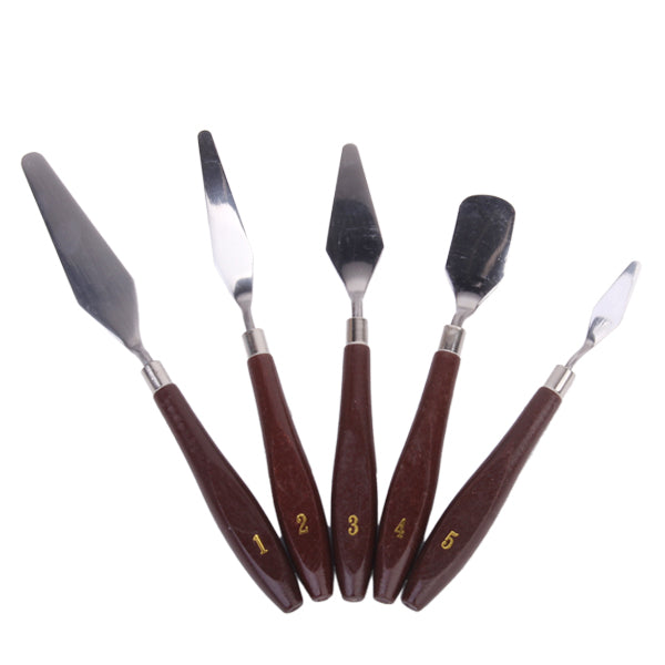This set of 5pcs palette knife / painter's spatula set is great for artists of any skill level. The spatulas can be used with many types of paint, acrylic, ceramics, pottery, arts & crafts, model / hobbyist painting, fabric painting, decoration, and more. Use them for applying ink or paint to any surface.