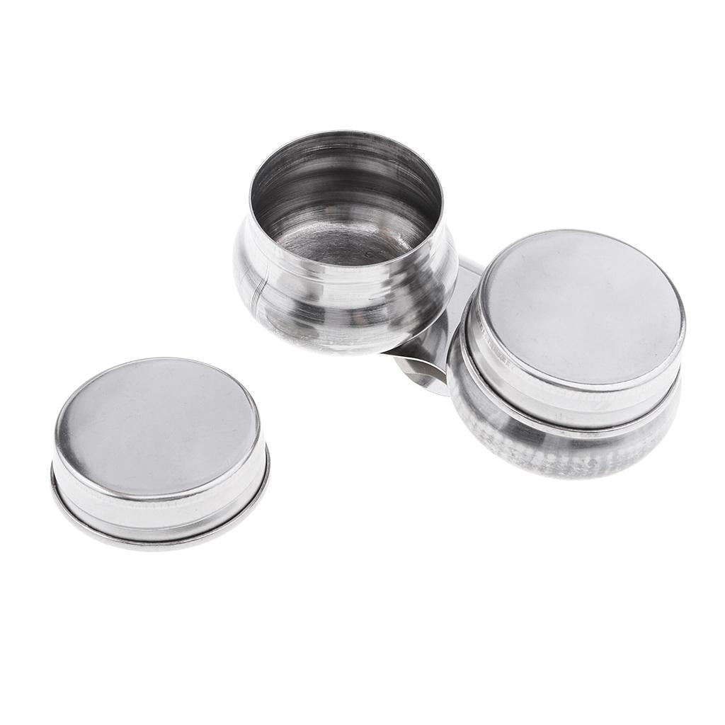 Double cup design so you can put megilp in one cup and turpentine in the other; wide mouth for easy access with a leakproof screw cap