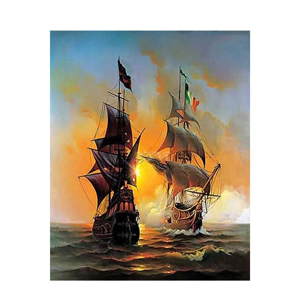 DIY Painting By Number Kit Canvas Wall Artwork Painting Picture Ships on Sea
