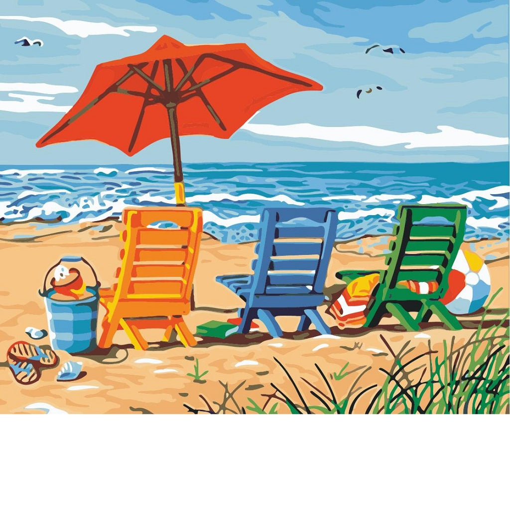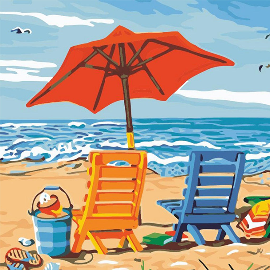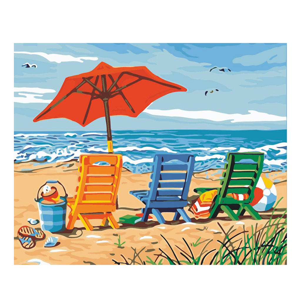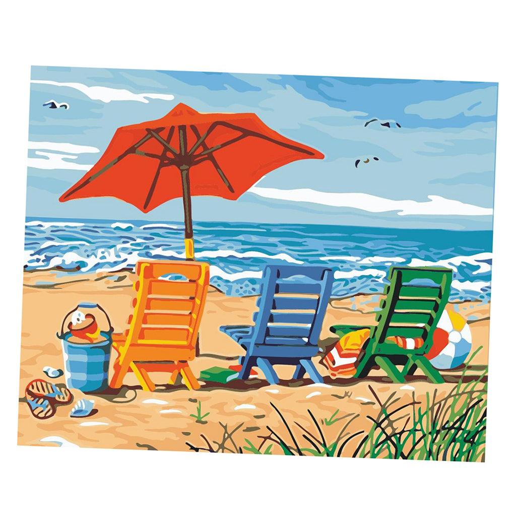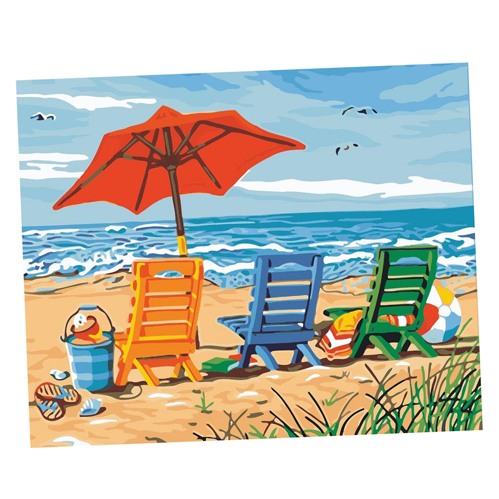DIY Painting By Numbers Frameless Canvas Picture Beach