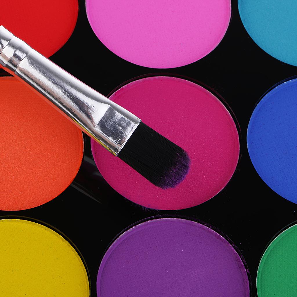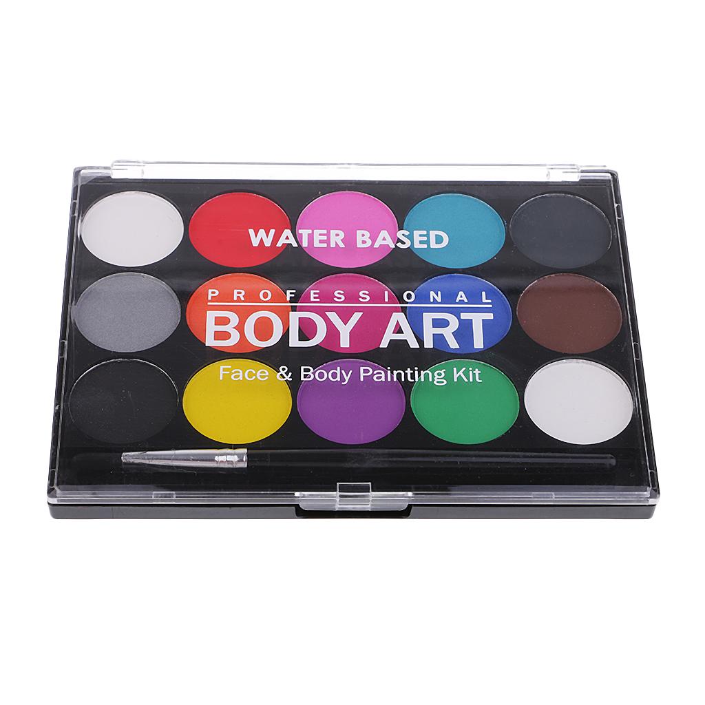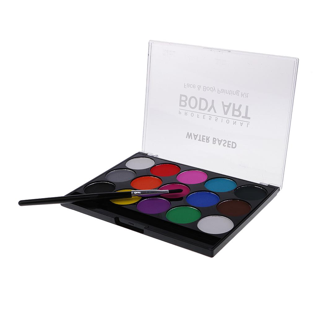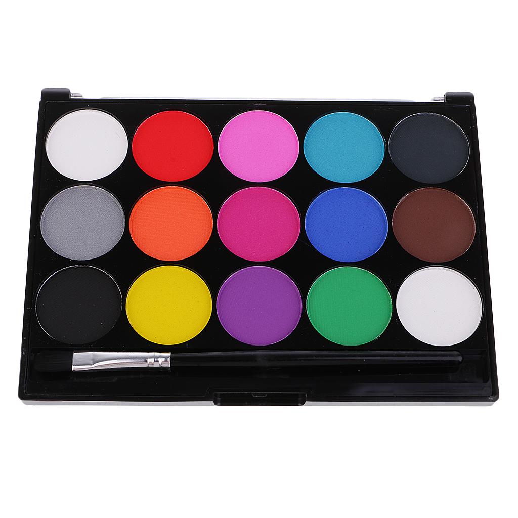 Comes with complete 15 colors Face Paint Palette Set, includes Fluorescent Gray, Black, Red, Fluorescent Orange, Yellow, Rose, Fluorescent Rose, Purple, Fluorescent Aqua Blue, Blue, Green, Dark Gray, Coffee and White.