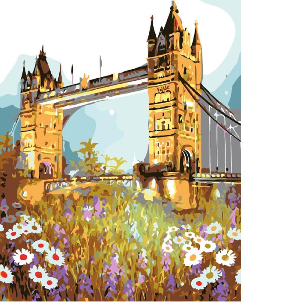 Frameless DIY Painting By Numbers Canvas Painting Art Picture Drawbridge