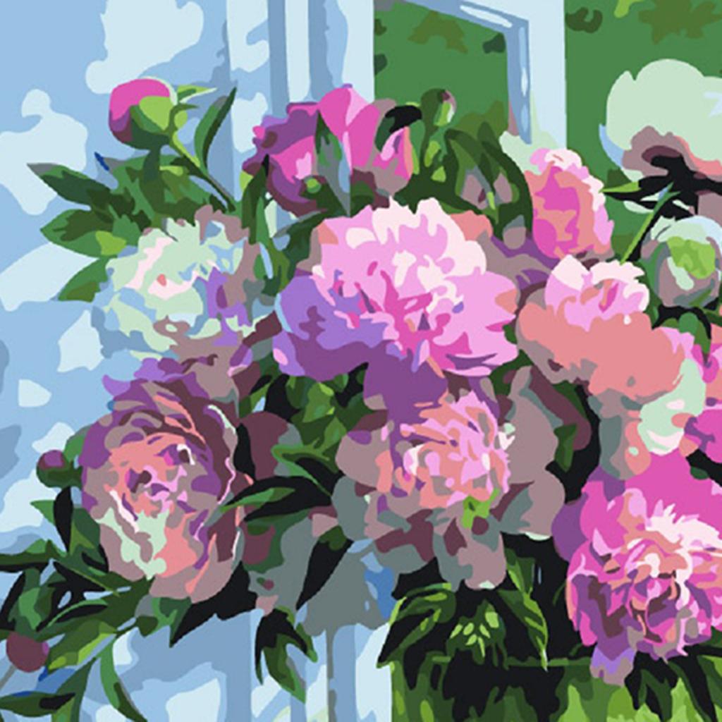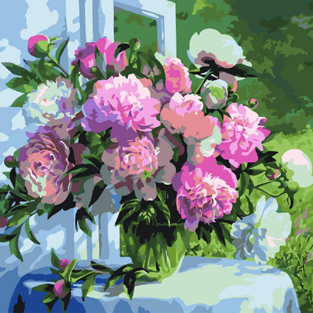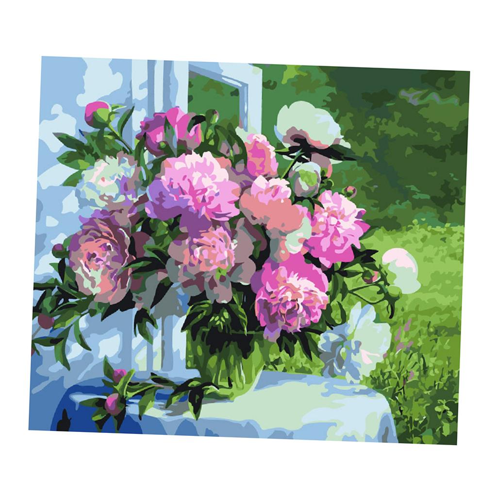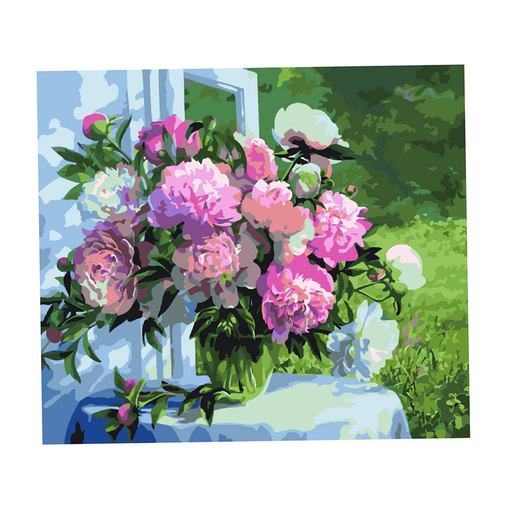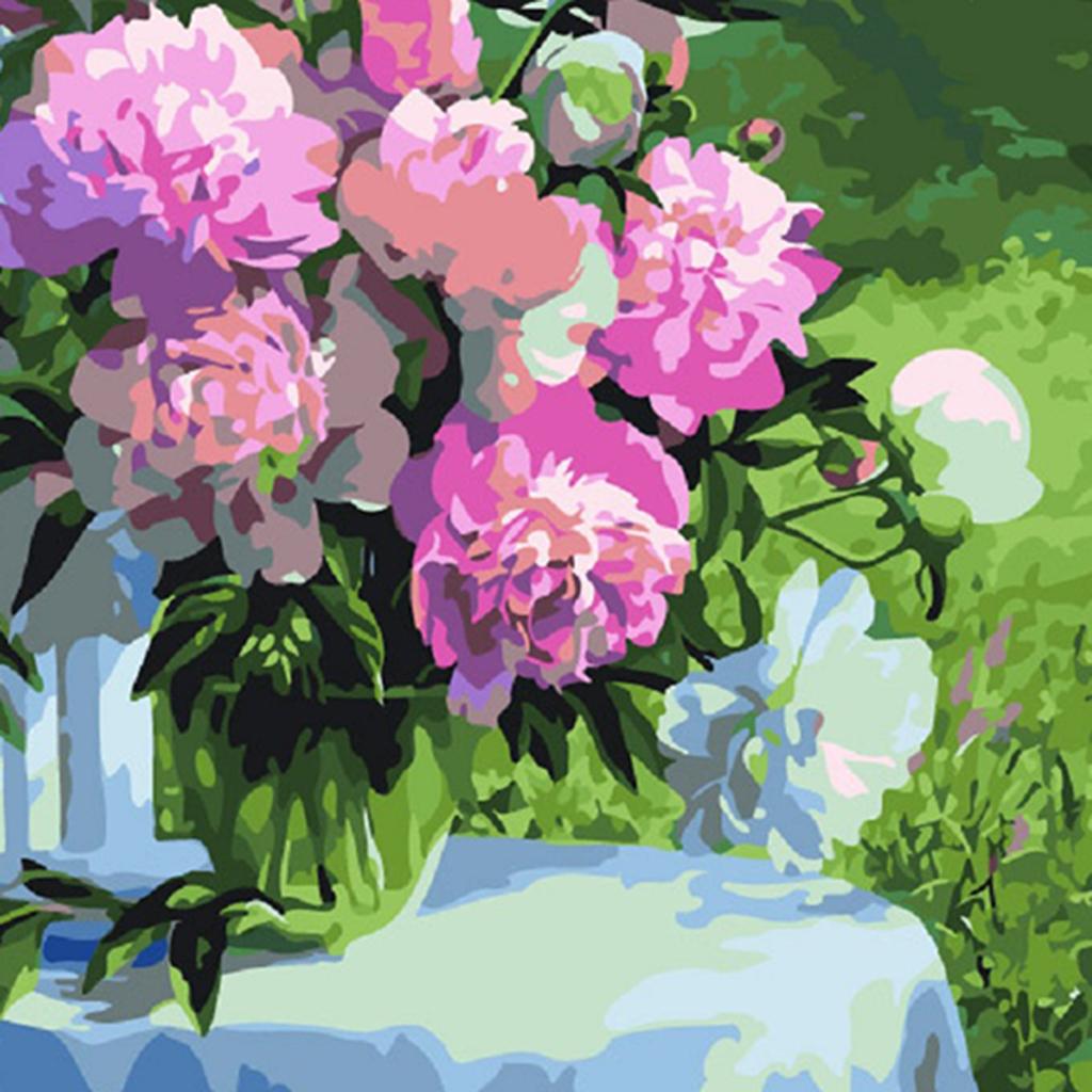 Frameless DIY Painting By Numbers Canvas Painting Art Picture Flower #10