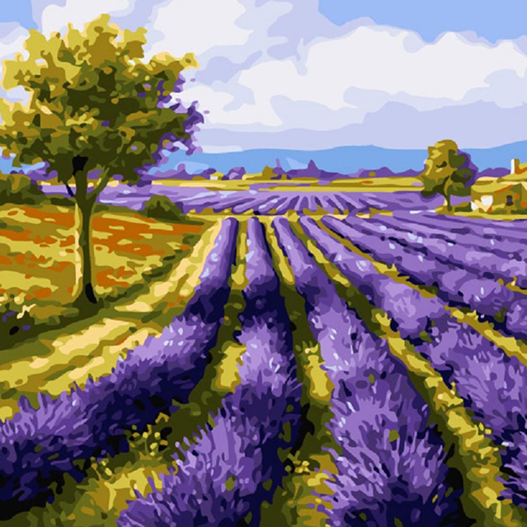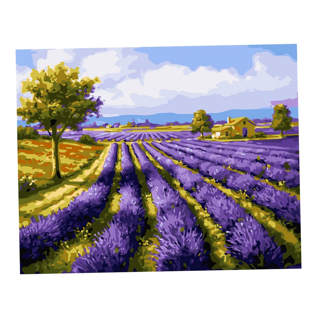 Frameless DIY Painting By Numbers Canvas Painting Art Picture Lavender Field