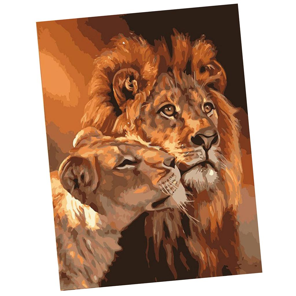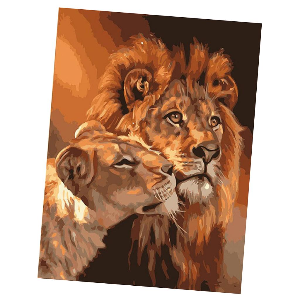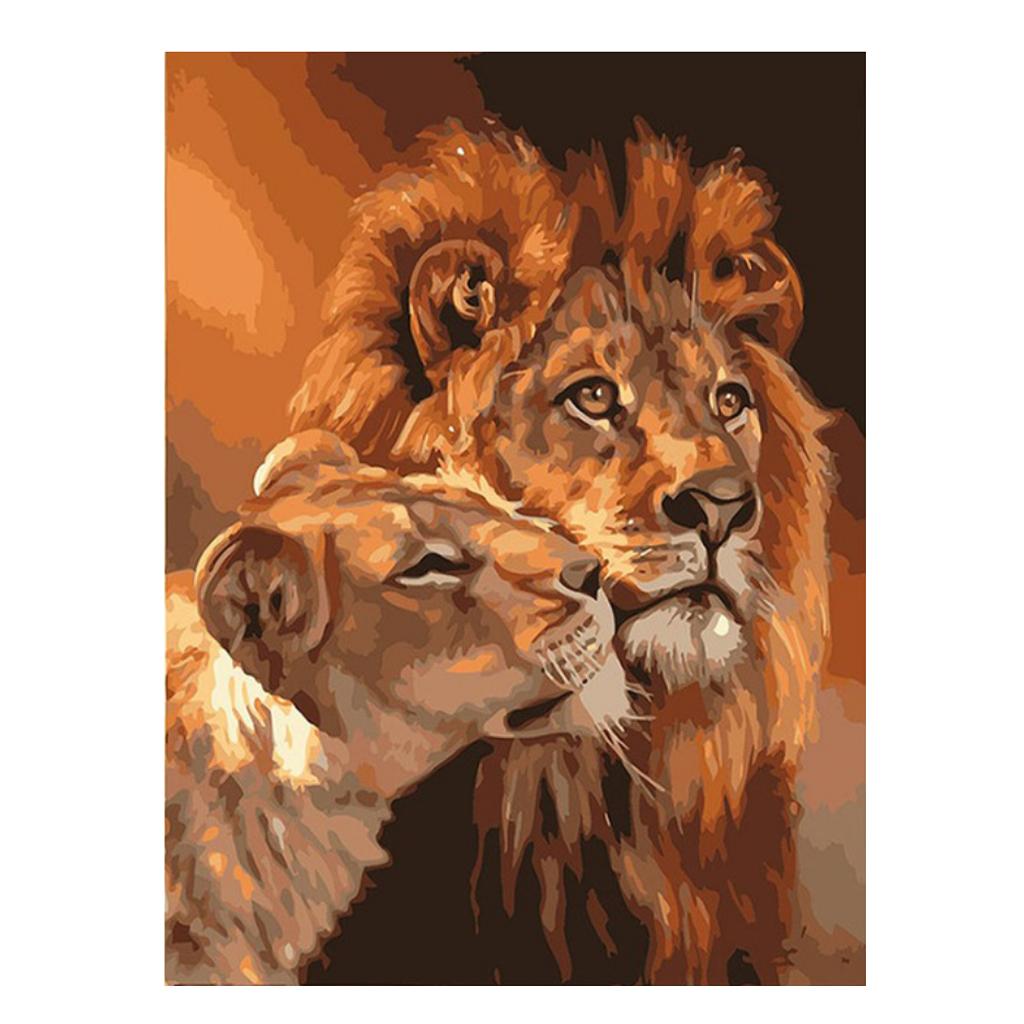 Frameless DIY Painting By Numbers Canvas Painting Art Picture Lions
