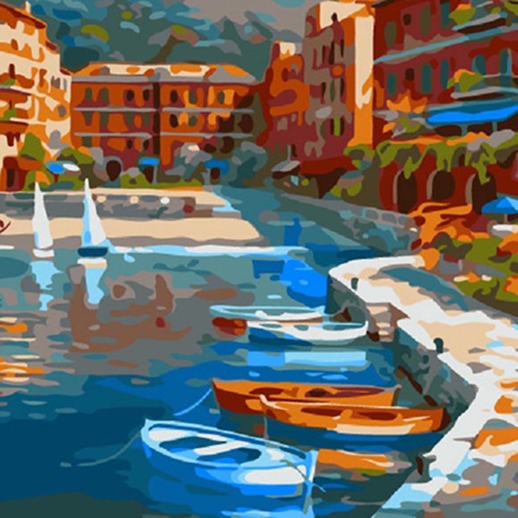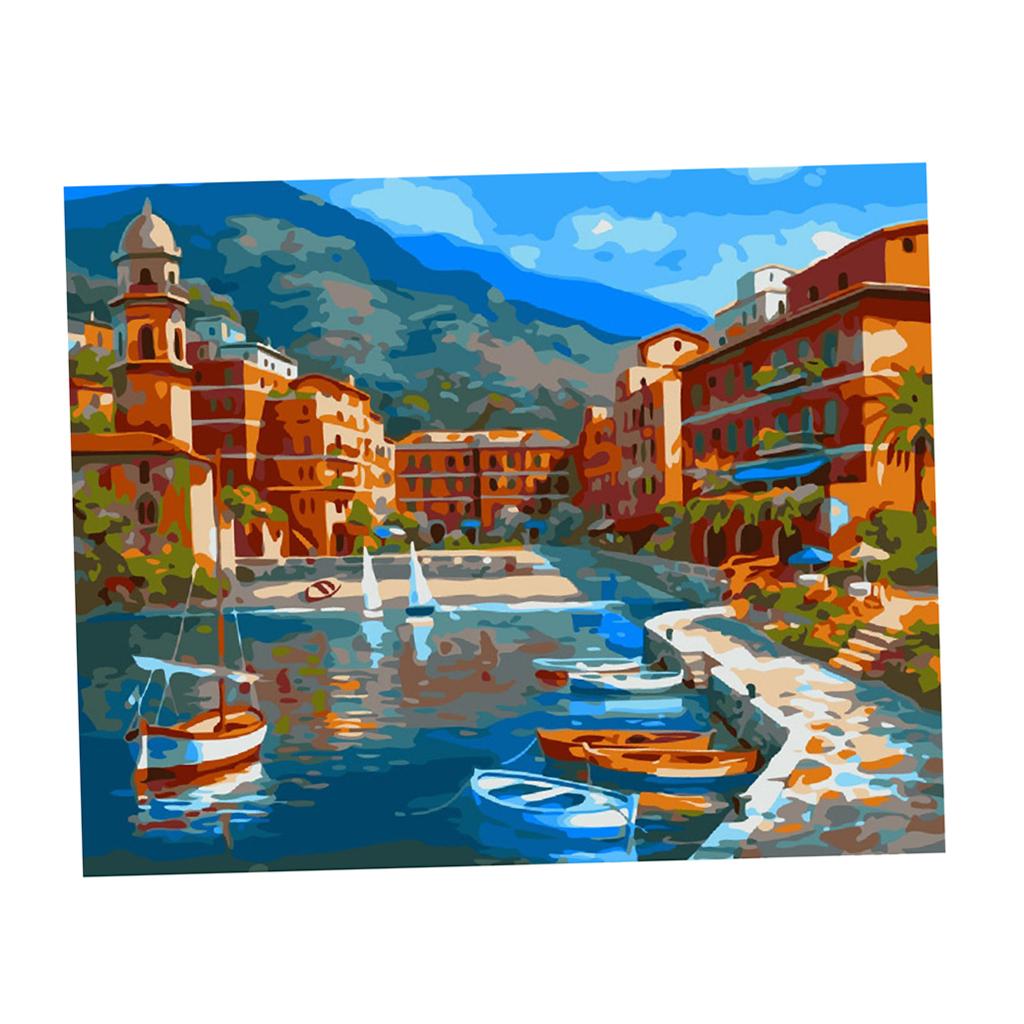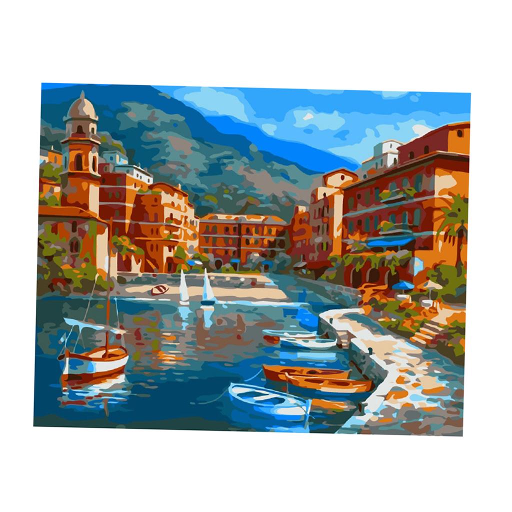 Frameless DIY Painting By Numbers Canvas Painting Art Picture Small Wharf