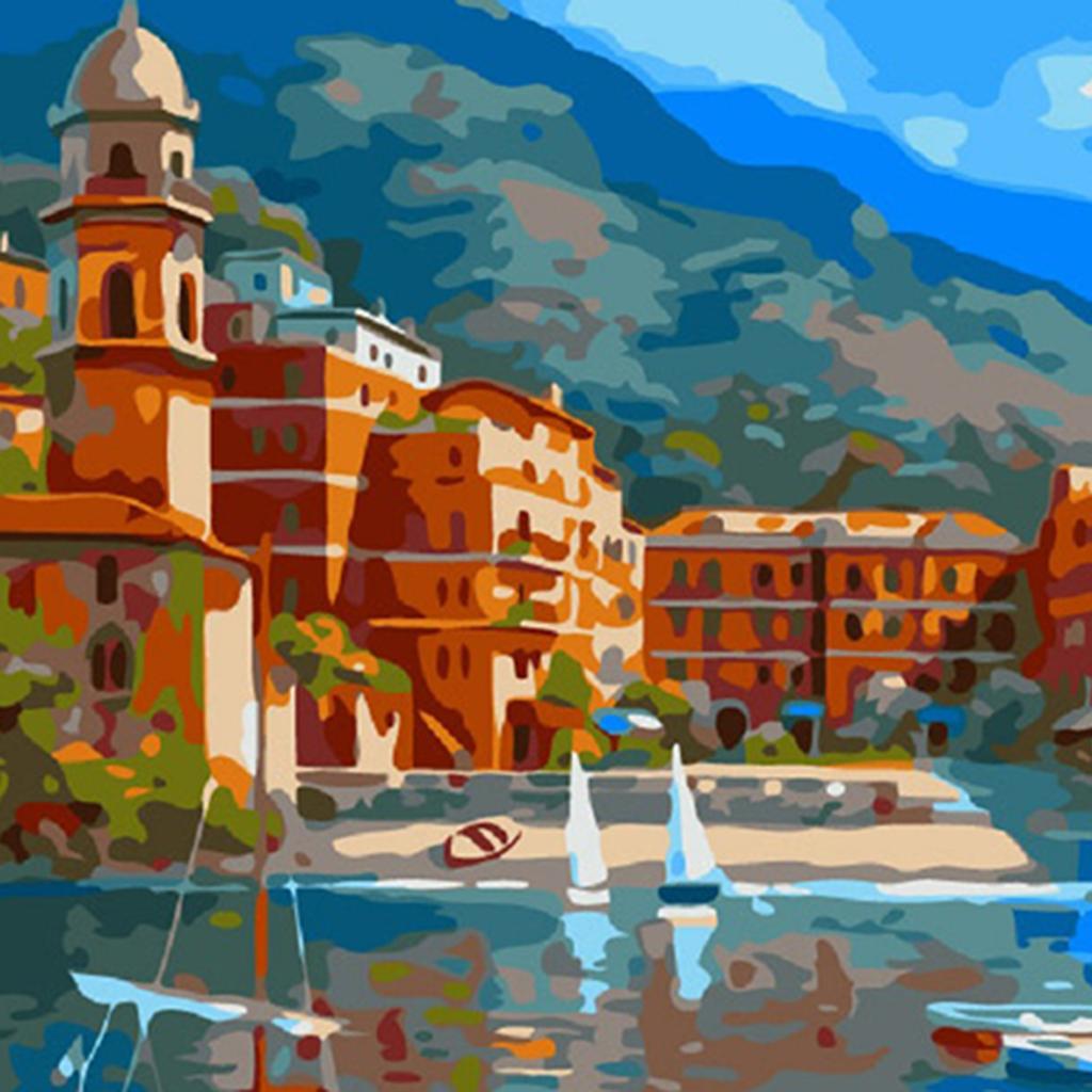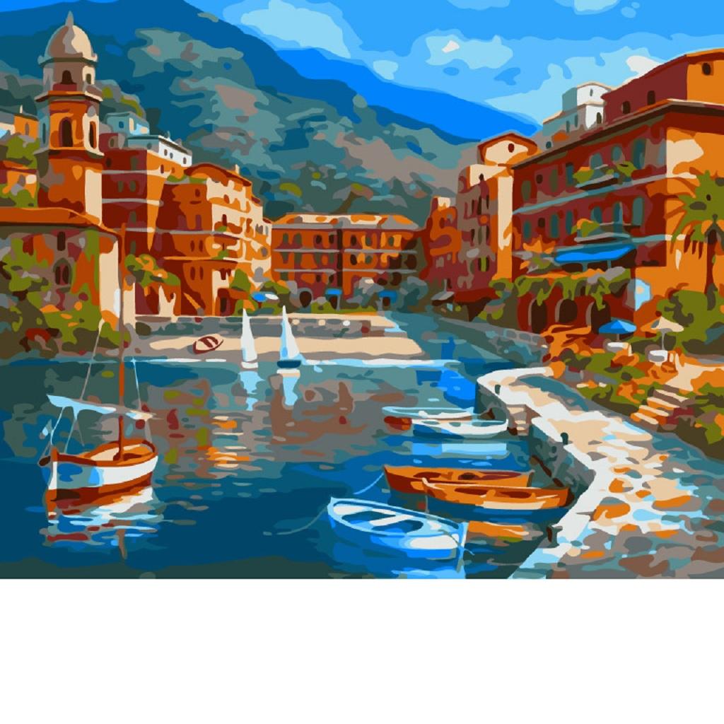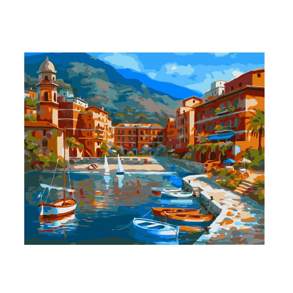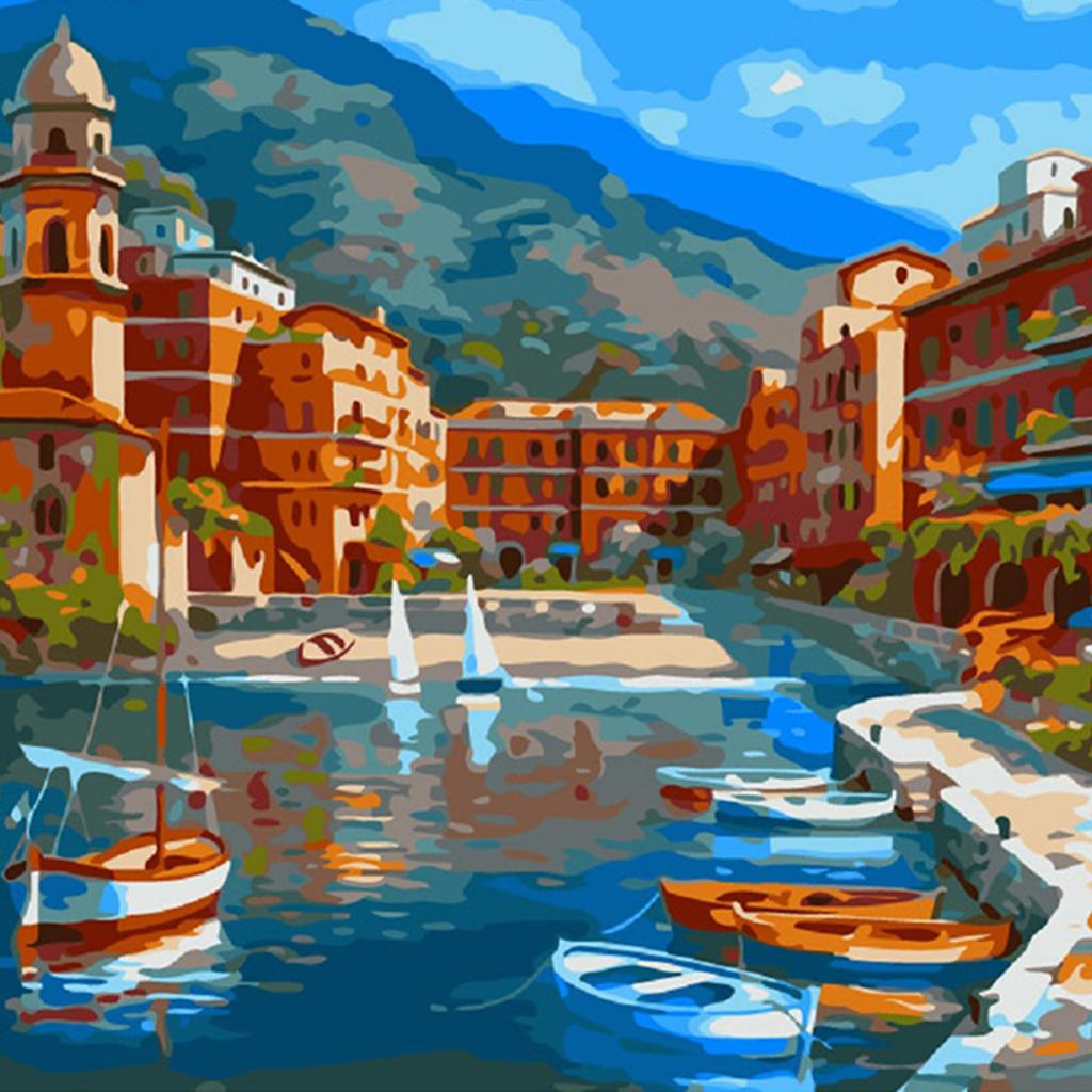 Frameless DIY Painting By Numbers Canvas Painting Art Picture Small Wharf