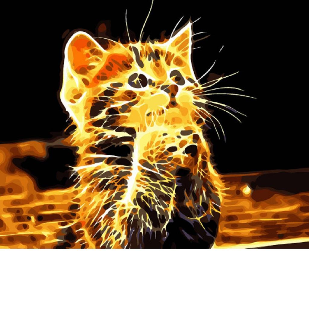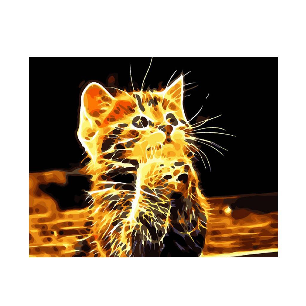 Frameless DIY Painting By Numbers Canvas Painting Art Picture Yellow Cat