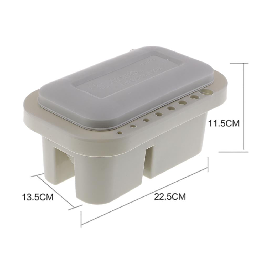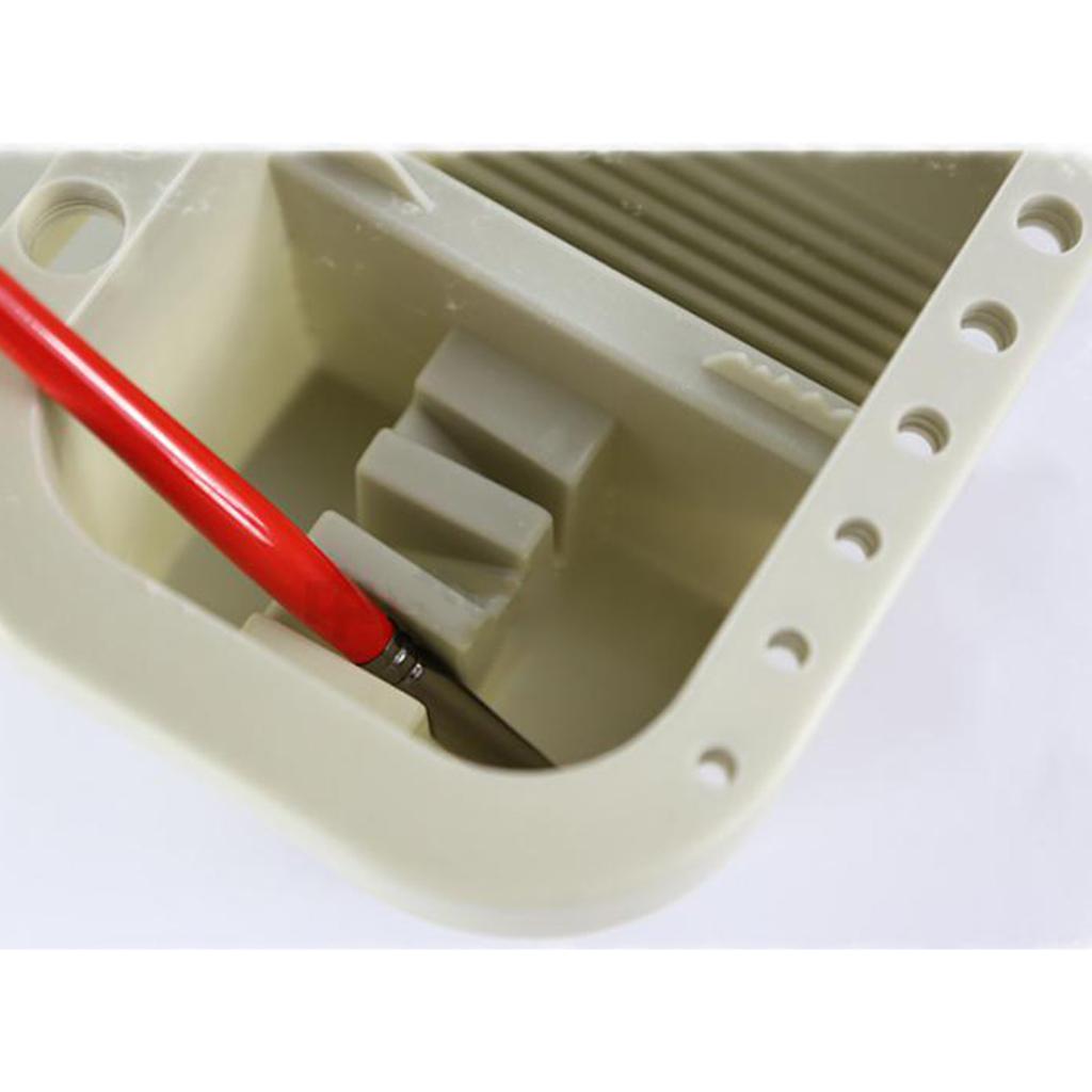 Ribs on bottom for easy brush cleaning; brushes can be suspended in liquid without crushing bristles