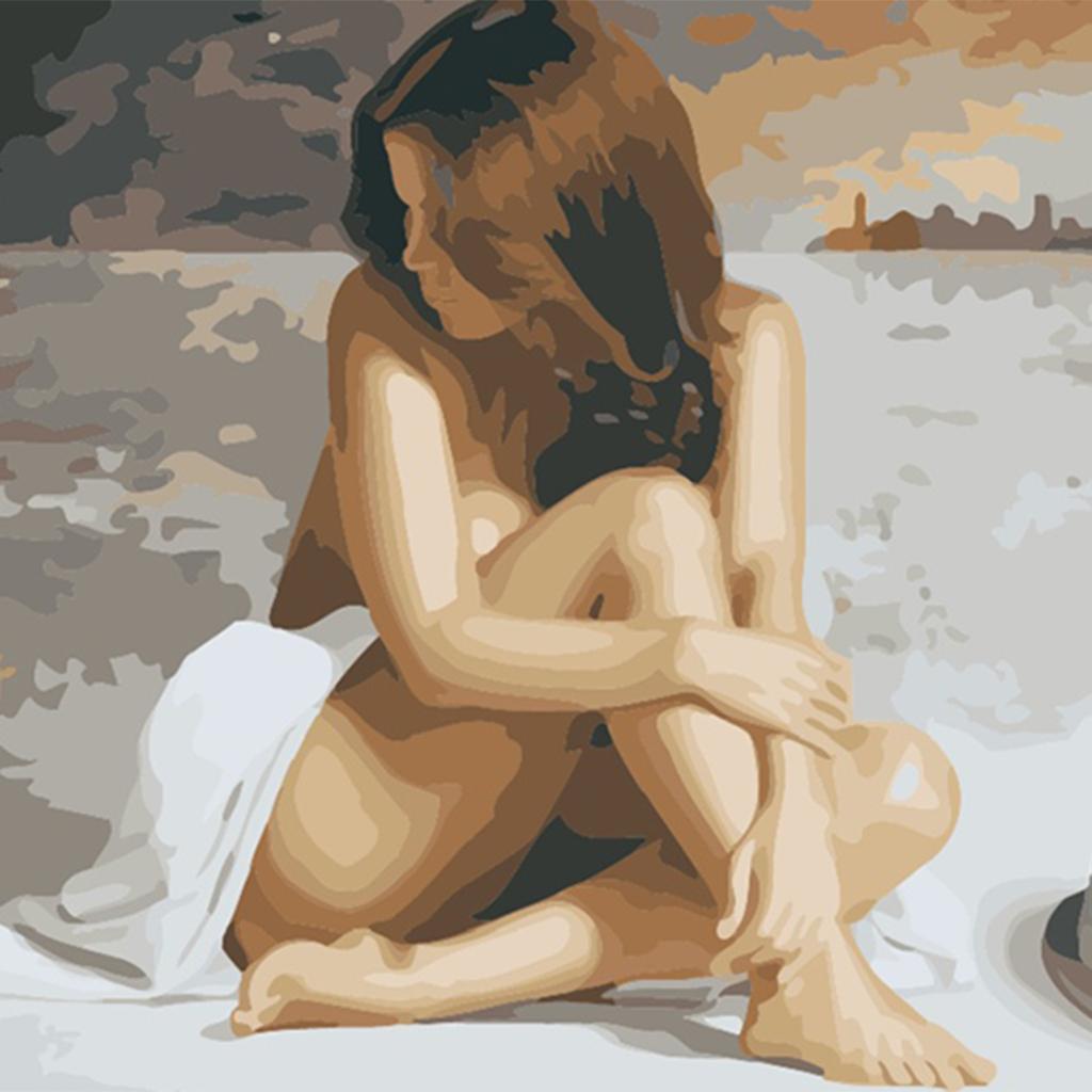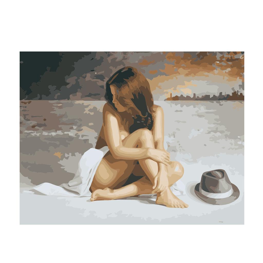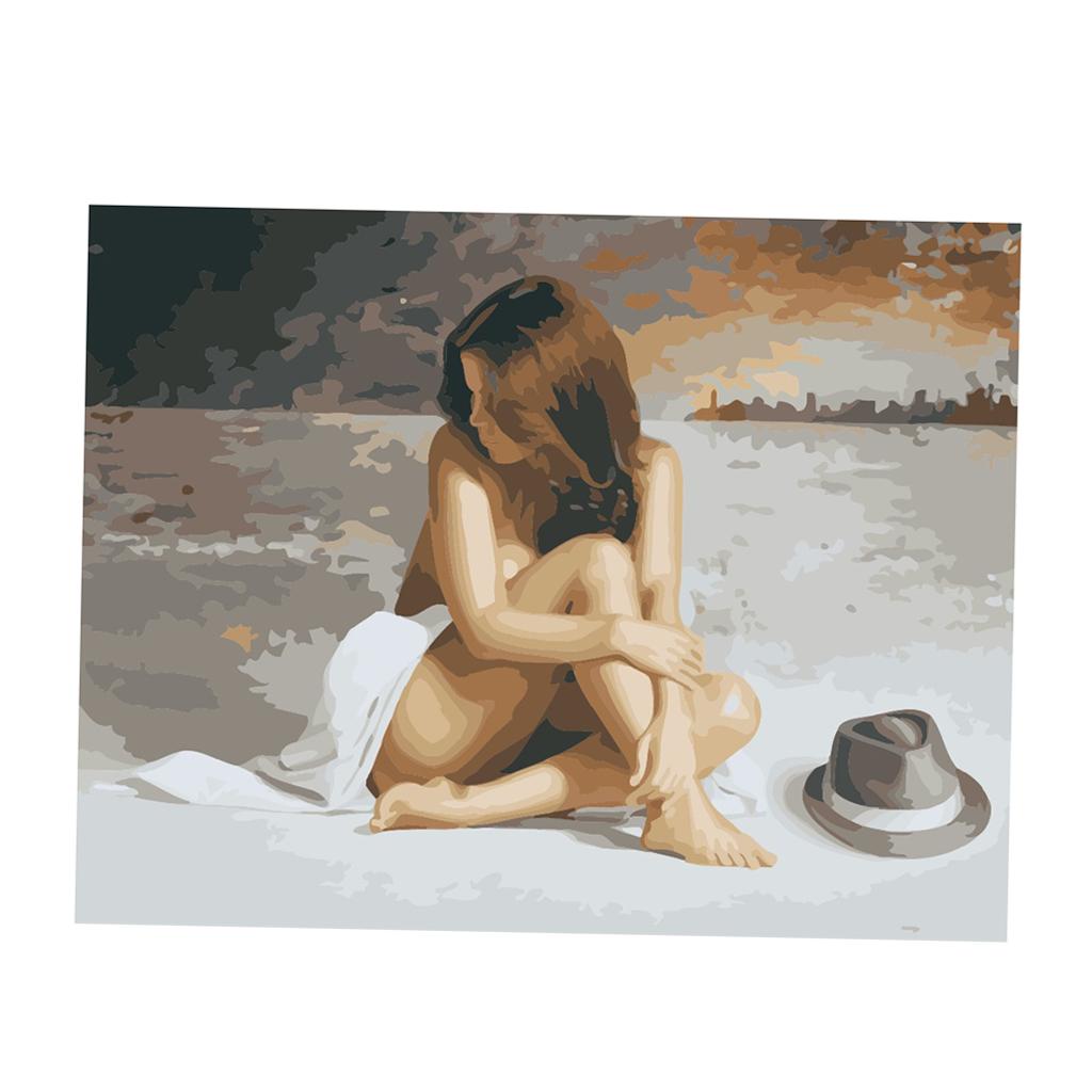 Unframed DIY Painting Paint By Number Kit Oil Canvas Picture Beach Women