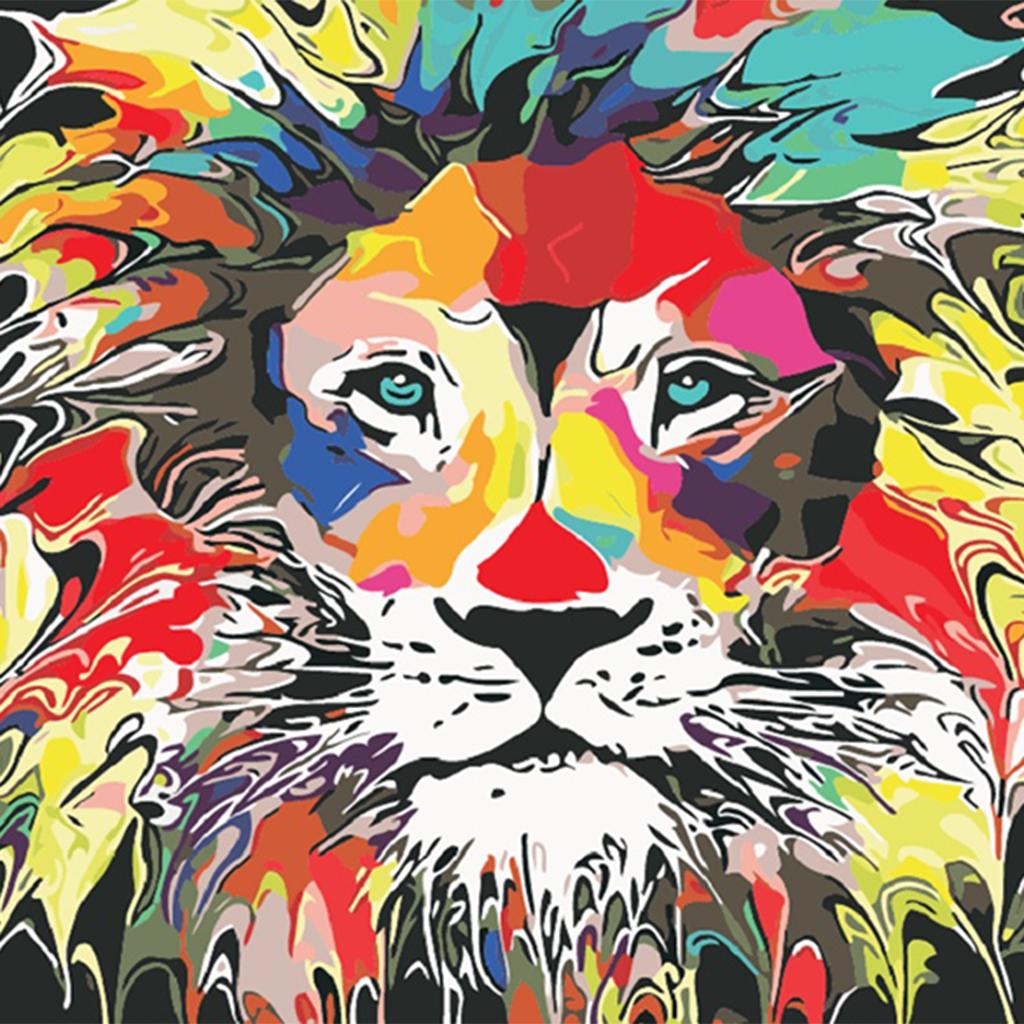 Unframed DIY Painting Paint By Number Kit Oil Canvas Picture Lions