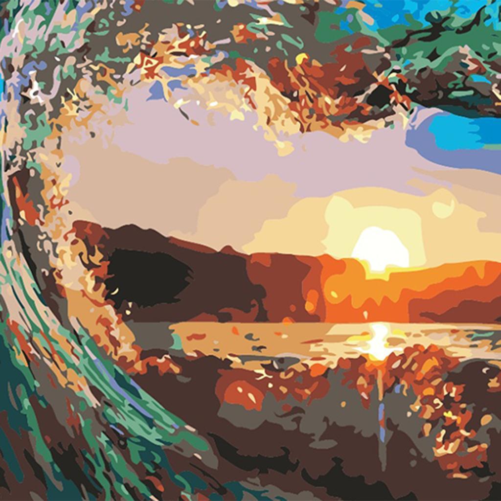 Unframed DIY Painting Paint By Number Kit Oil Canvas Picture Seaside Sunset