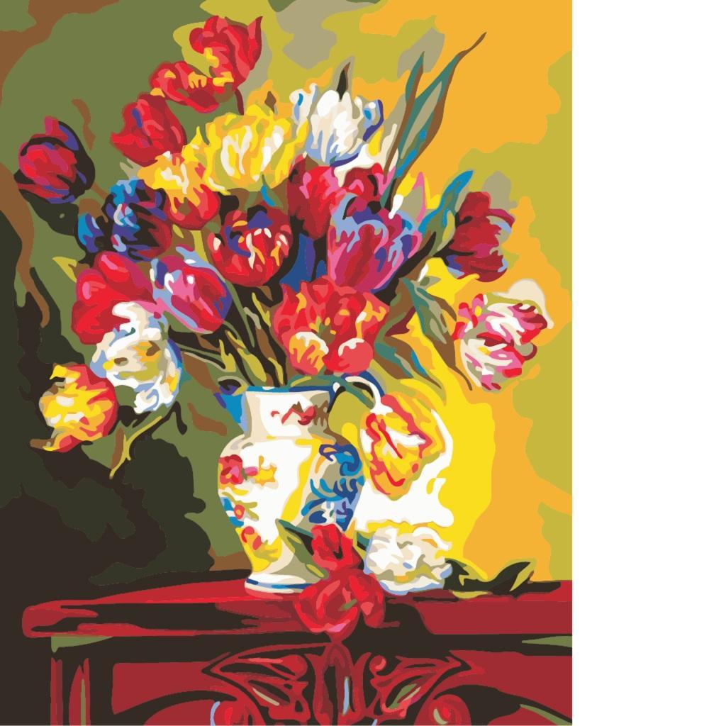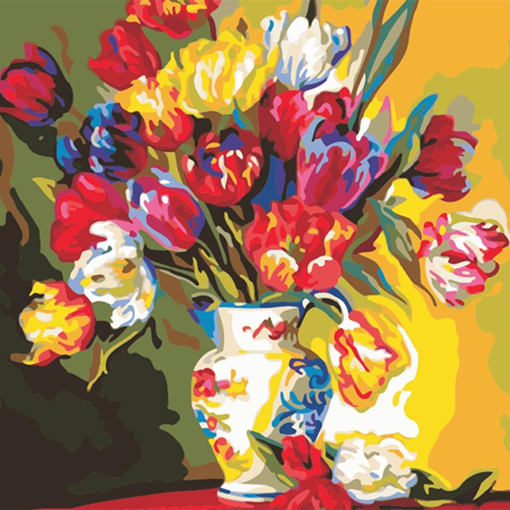 Unframed DIY Painting Paint By Numbers Kit Oil Canvas Picture Tulips