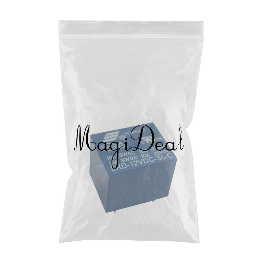 Songle power relays with a coil rated voltage of 12V DC and SPDT contacts with a 10A rating.