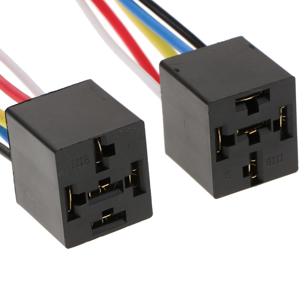 Sockets designed to fit automotive 5-pin relays with 6.3mm terminals. Each socket has 135mm wires made from copper with coloured insulation.