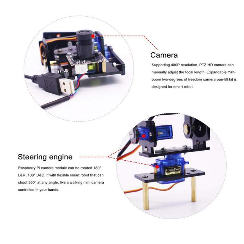 HD & Manual Focus:Supporting 480P resolution, PTZ HD camera can manually adjust the focal length. Expandable Yahboom two-degrees of freedom camera pan-tilt kit is designed for smart robot.